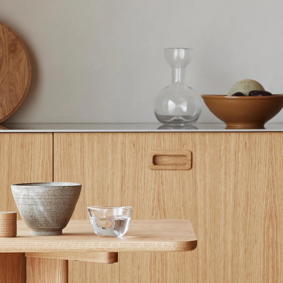 Pinho von Linnea Ek Blæhr für Form & Refine ist eine Hommage an die jahrhundertealte Kunst des Glasblasens, die sich in der charakteristischen zarten, leicht unebenen Oberfläche und den winzigen Bläschen zeigt. Inspiriert von zeitlosen Formen dient die Karaffe sowohl als praktischer Krug für den täglichen Gebrauch als auch als dekoratives Stück, wenn sie nicht in Gebrauch ist.