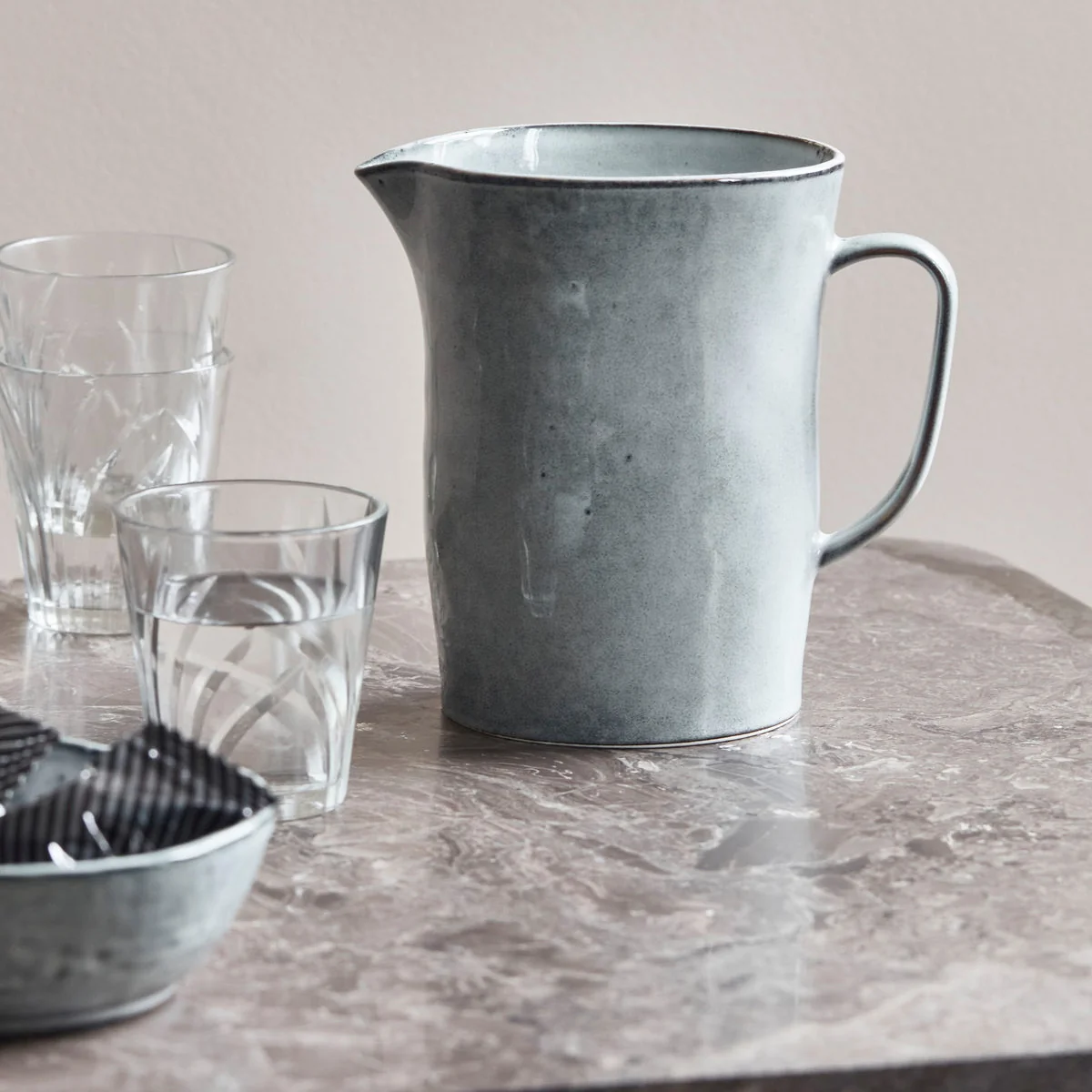 Ein kleines Kännchen für Milch oder Saucen ist das i-Tüpfelchen auf deinem gedeckten Tisch. Diese kleine Rustic Steingut-Kanne von House Doctor präsentiert sich in einer graublauen Glasur mit einem dunklen Kontraststreifen. Der große Henkel rundet das harmonische Design gekonnt ab.