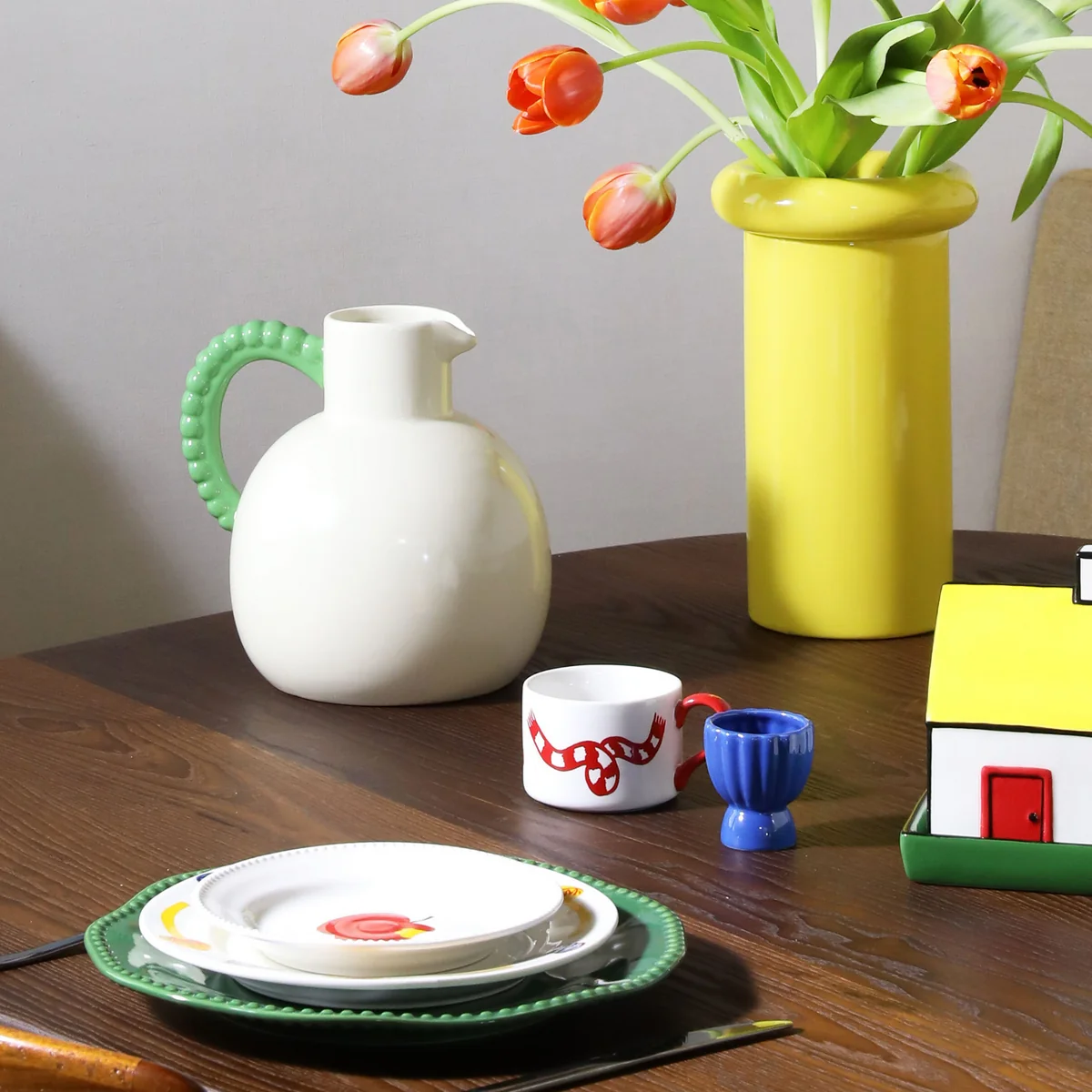 Die Perle Karaffe von &klevering ist ein elegantes Highlight aus hochwertigem Steinzeug, das jeden Tisch mit einem markanten Akzent versieht. Der kontrastfarbene Perle-Griff setzt ein starkes Statement und verleiht der Karaffe eine unverwechselbare Ausstrahlung. Kombinieren Sie sie mit den passenden Perle Tellern, um an einem heißen Sommerabend ein harmonisches und stilvolles Tischarrangement zu kreieren – ideal für erfrischende Getränke und besondere Momente.