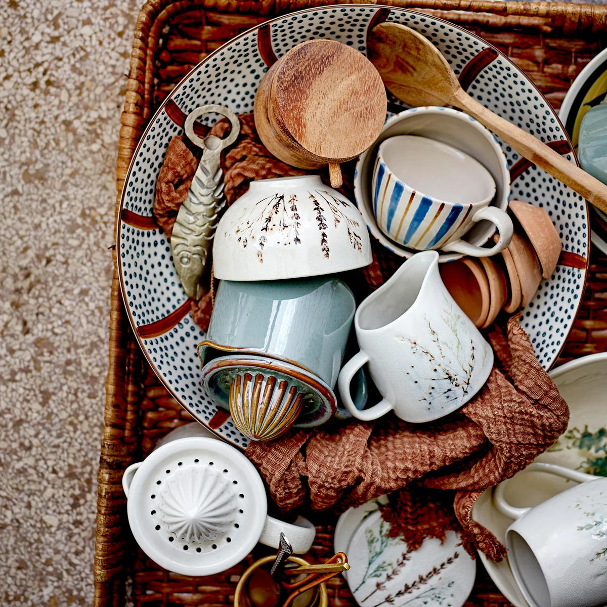 Alle Geschirrteile der Bea Serie von Bloomingville werden aus Steingut hergestellt und anschließend mit einer Craquelé-Glasur versehen. Aufgrund der Handfertigung ist jedes florale Muster einzigartig.