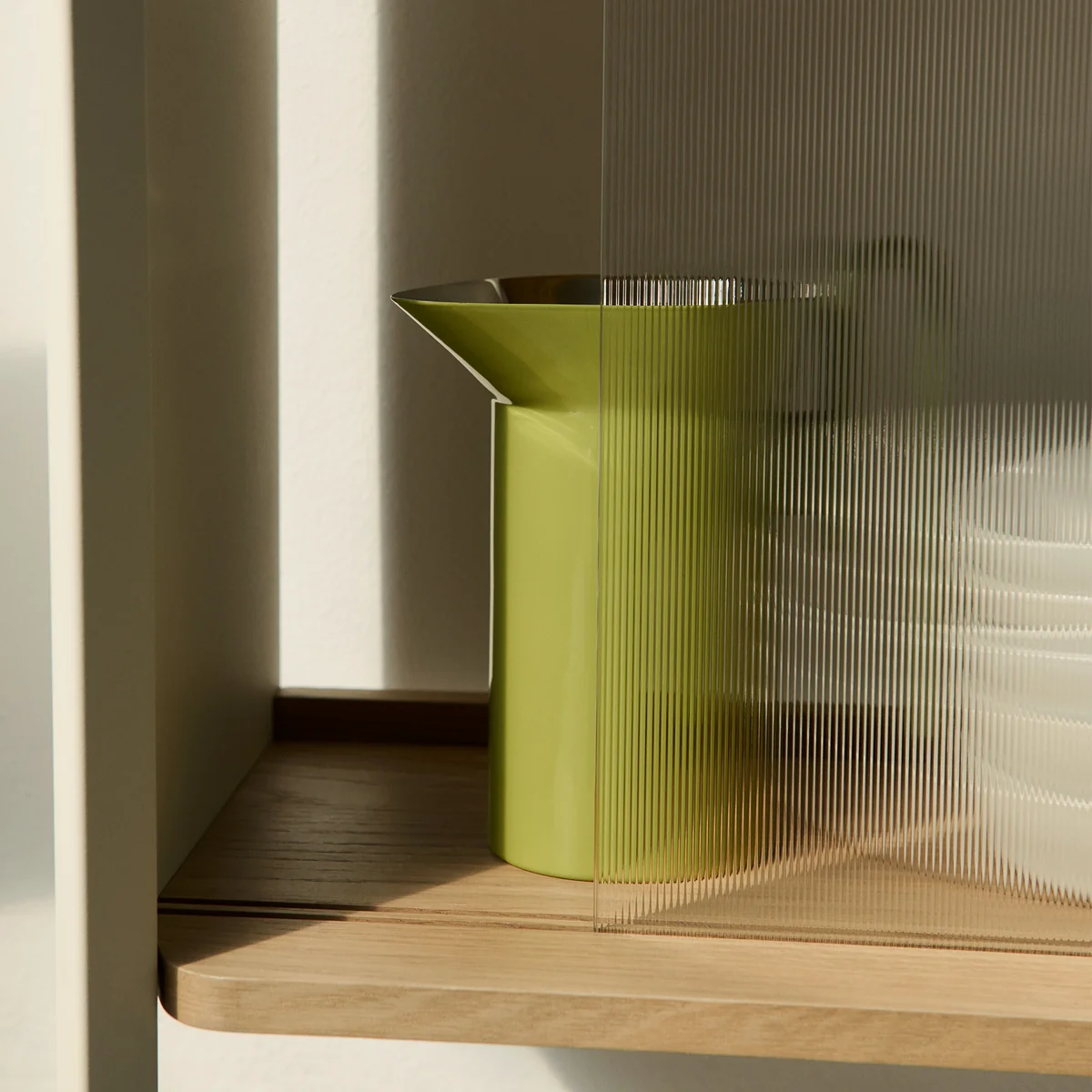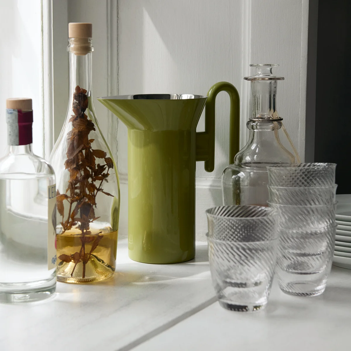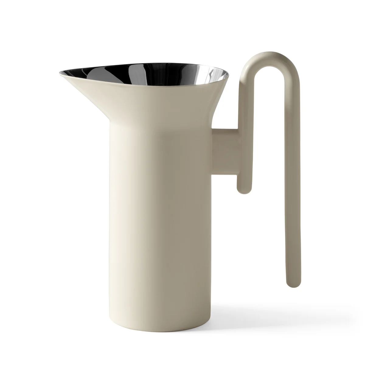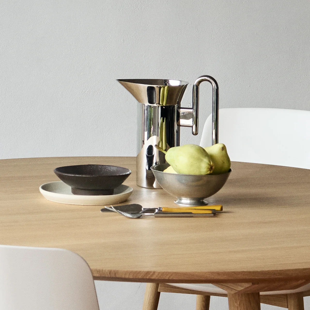 Der Momento JH38 Krug aus dem dänischen Hause &Tradition ist das Ergebnis jahrelanger Produktforschung, sodass ein perfektioniertes Gefäß entstanden ist. Der Krug kann dank seiner idealen Ausgießform wunderbar für das Servieren von Limonade, Wasser und Co verwendet werden. Mit einem Fassungsvermögen von einem Liter ist JH38 in unterschiedlichen Varianten aus Edelstahl erhältlich.