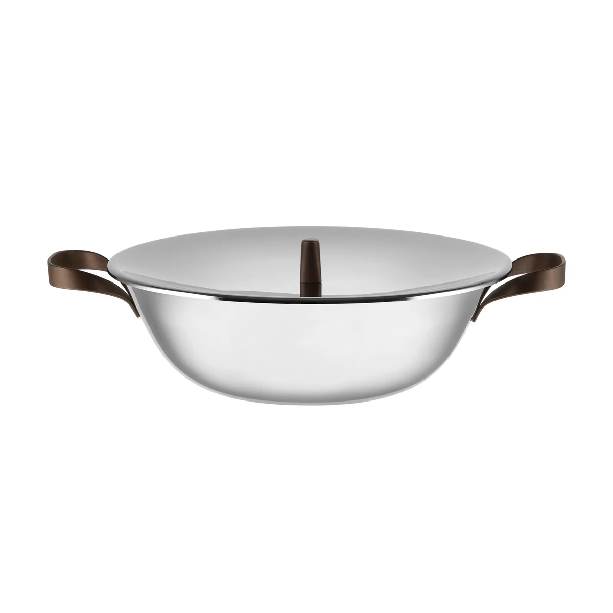Der Edo Wok von Alessi ist Teil einer zeitlosen und eleganten Serie an Töpfen und Pfannen, die von Patricia Urquiola entworfen wurde. Mit dem Wok und der passenden Einlage lassen sich mit wenig Fett und unter Beibehaltung aller aktiven Inhaltsstoffe der Nahrung leichte und gesunde Gerichte zubereiten. Durch das anmutige Design, welches für die Töpfe und Pfannen der Edo Serie typisch ist, kann der Wok auch gleichzeitig als Servierschüssel auf dem Esstisch dienen.