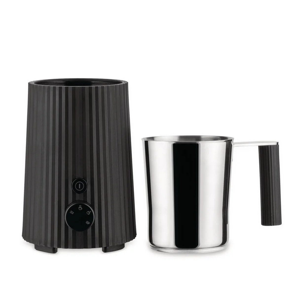 Der Plissé Milchaufschäumer von Alessi vereint ein schimmerndes und architektonisches Design mit einer funktionalen Einfachheit im Alltag. Michele De Lucchi mischt ausgewählte Formen und Materialien miteinander und versetzt sie in eine gefaltete Optik, um ihnen einen künstlerischen Touch zu verleihen. Somit setzt er eine Methode ein, die in vielen Mode- und Kunststilrichtungen herangezogen wird, wenn es darum geht, Materialien Volumen und auffällige Dimensionen zu schenken.