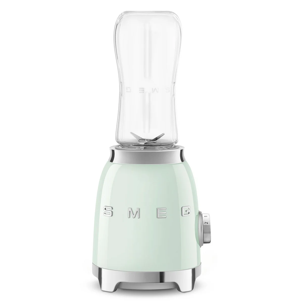 Der Mini-Standmixer PBF01 von Smeg vermischt flüssige und halbfeste Zutaten und ist ideal für Pürierarbeiten. Er vereint Ästhetik mit ausgewogener Funktionalität. Die lebhaften Farben sowie die abgerundete Formgebung des 50er-Jahre Designs machen sich auf jedem Tresen bemerkbar. Der Standmixer zeichnet sich durch seine Robustheit, seine Effizienz und seine Belastbarkeit aus. Über unterschiedliche Geschwindigkeitsstufen und scharfen rotierenden Messern, kann der Mixer alle Arten von Gemüse, Früchten und Flüssigkeiten bis zum gewünschten Feinheitsgrad vermischt werden.