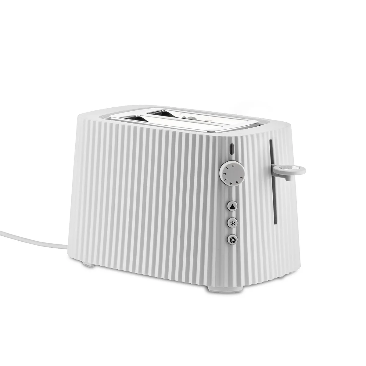 Der Toaster von Alessi aus der Plissé Kollektion überzeugt durch eine hohe Funktionalität und einen einzigartigen Look. Dank sechs Bräunungsgraden und der integrierten Stopp-, Auftau- und Aufwärme-Funktion wird jede Toastscheibe zum individuellen Genuss. Mit der Bagel-Funktion wird hingegen nur eine Seite des Toasts erwärmt. Darüber hinaus ist der Boden des Gerätes rutschfest und die herausziehbare Krümelschale erleichtert die Reinigung. Damit ein Kabelsalat verhindert wird, kann das integrierte Kabel an der unteren Basis des Toasters eingewickelt werden.