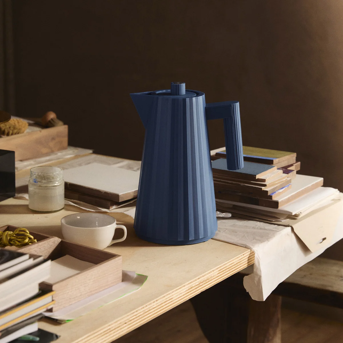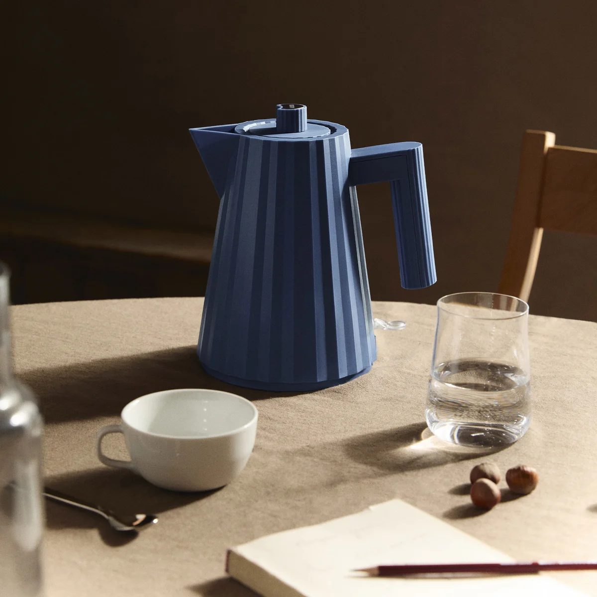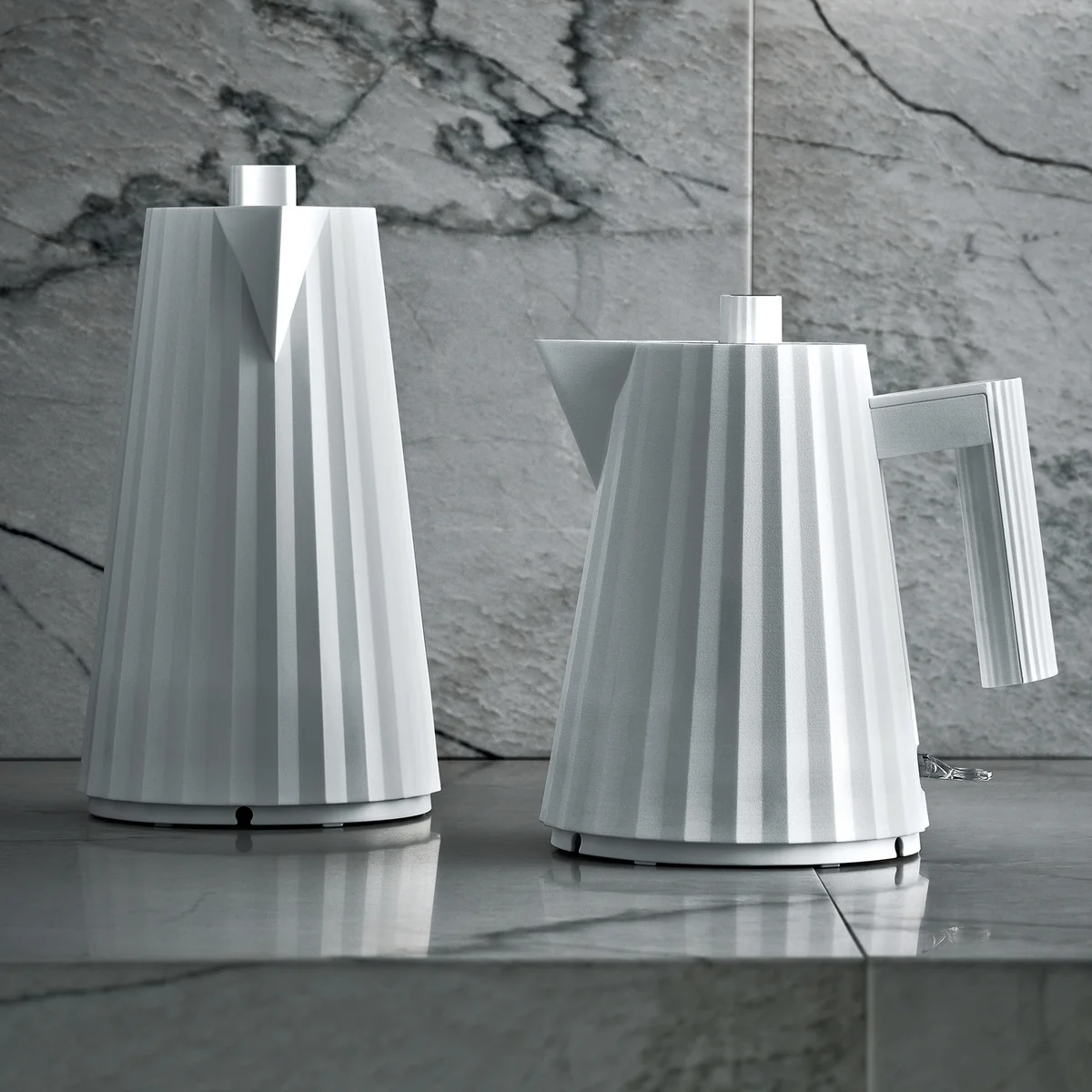 Aus thermoplastischem Harz hergestellt erinnert der Plissé Wasserkocher mit einem Fassungsvermögen von 1 l oder 1,7 l an ein, von einem Modeschöpfer kreiertes Kleid. So wird er in verschiedenen Farben zu einem dekorativen Gegenstand auf der Arbeitsplatte und zum funktionellen Blickfang in jeder Küche.