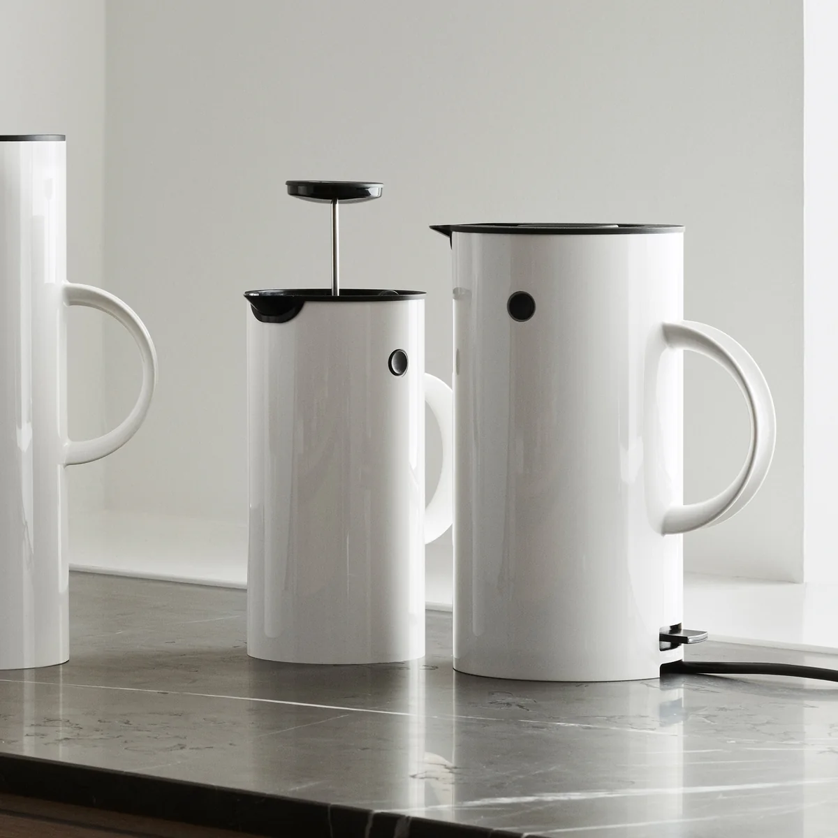Das ikonische Design der von Erik Magnussen entworfenen Isolierkanne EM77 ist seit über 40 Jahren nicht mehr von den Kaffeetischen wegzudenken. Nun wird die EM Familie um ein weiteres Mitglied erweitert: Der EM 77 Wasserkocher überzeugt mit einer ebenso klaren Formsprache und greift das beliebte EM Design durch den markanten Henkel und die zylindrische Silhouette gekonnt auf.