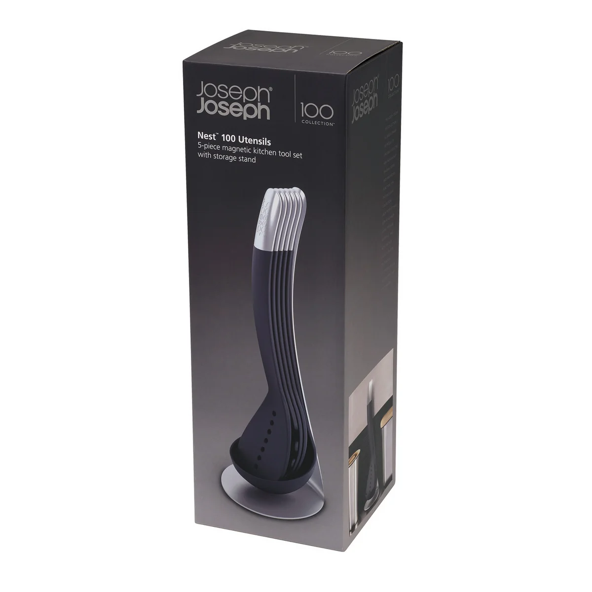 Nest ist die ultimative Kollektion aus praktischen, platzsparenden Küchenhelfern, die für viele Zwecke sinnvoll sind. Das innovative Design erlaubt es, die neun einzelnen Teile komplett ineinander zu stapeln. Als Nest 100 verfügt das Set über eine klare, schlichte Gestaltung und wird von Joseph Joseph aus Edelstahl hergestellt. Das sorgt dafür, dass die ursprünglich aus Melamin gefertigten Nest-Küchenutensilien als Produkte der 100 Kollektion auch in edlen Küchen ihren Platz finden.