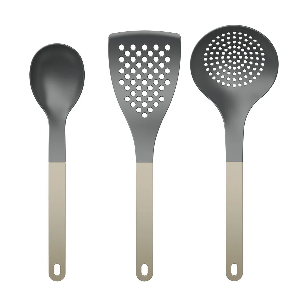 Hergestellt aus langlebigem und hitzebeständigem Kunststoff, sind die Küchenhelfer nicht nur robust, sondern auch schonend für Ihre Töpfe und Pfannen. Mit ihrem funktionalen Design und den ergonomischen Griffen liegen sie bequem in der Hand und erleichtern die Zubereitung von Speisen.