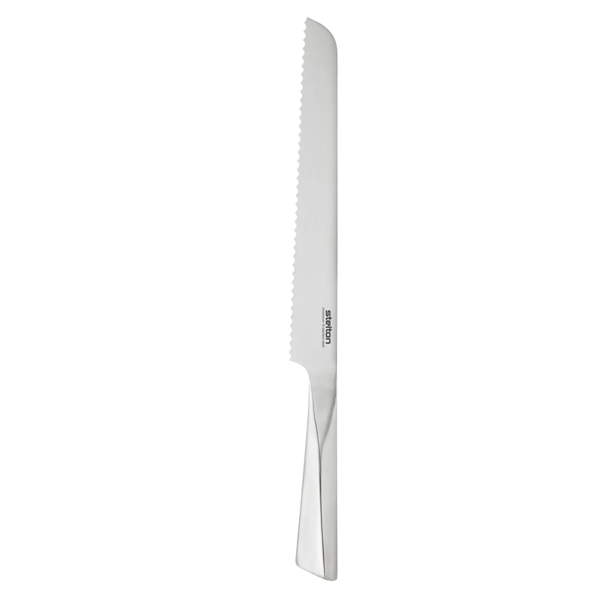 Das Brotmesser aus der Trigono-Serie von Stelton hat alles, was ein gutes Messer braucht: eine scharfe gezackte Klinge und einen haptischen und ergonomischen Griff. Es zeichnet sich durch die Verarbeitung von besonderem japanischen Stahl aus, der zu 18% aus Chrom besteht. Der Mix aus Chrom und Edelstahl garantiert eine lange und robuste Haltbarkeit, aber auch die nötige Weiche beim Messerschärfen. Das Trigono-Brotmesser von Stelton darf in keiner Küche fehlen.