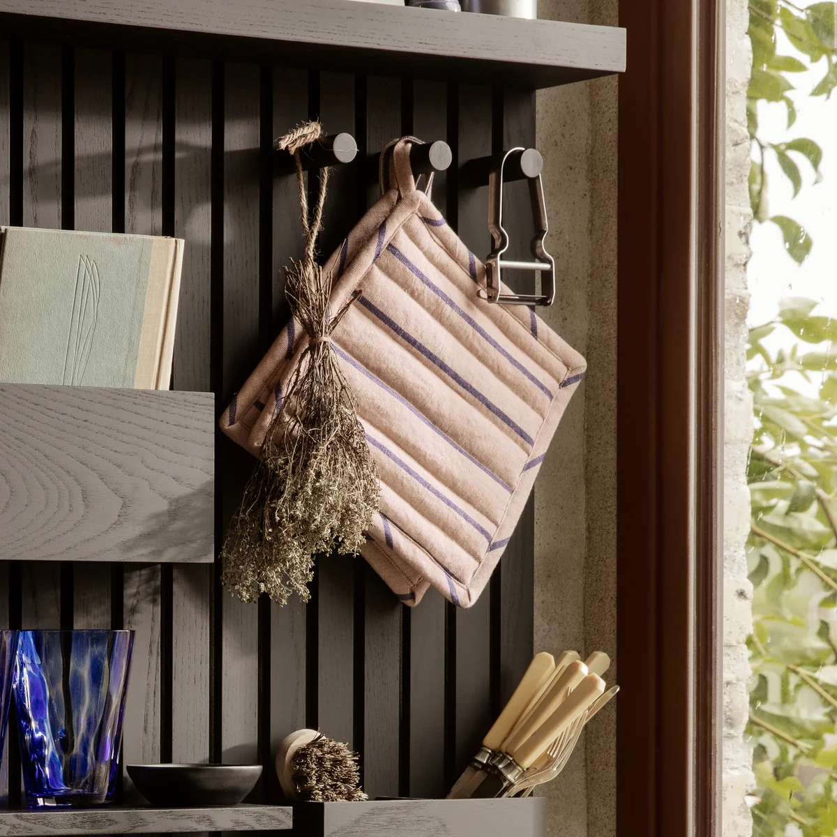 Die Hale Topflappen von Ferm Living schützen die Finger auf stilvolle Weise vor heißen Töpfen und Pfannen. Sie sind mit recyceltem Polyester aufgefüllt und besitzen eine Schlaufe, damit sie zum Beispiel an einem Wandhaken in der Küche aufgehängt werden können.
