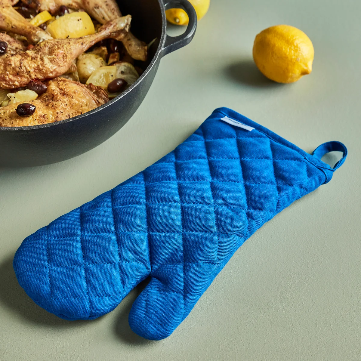 Dieser Neat Küchenhandschuh von Nicolas Vahé vereint Funktionalität und Design perfekt. Aus hochwertiger, gesteppter Baumwolle gefertigt, bietet er einen sicheren Griff beim Kochen. Die lebendige blaue Farbe verleiht der Küche einen frischen Look. Nach Gebrauch kannst er zusammen mit den Geschirrtüchern an die Wand gehängt werden.