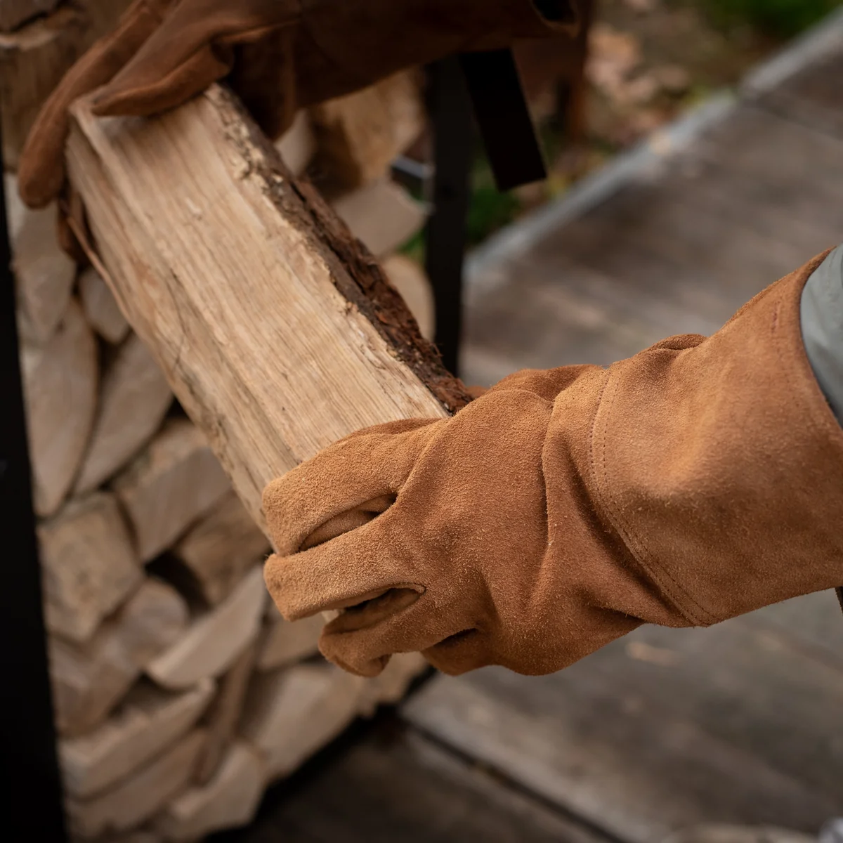 Mit den Grillhandschuhen von dem niederländischen Label Weltevree kann die Grillsaison kommen. Die aus Leder gefertigten Weltevree-Gloves schützen die Hände, während heißes Ofengeschirr aus dem Outdooroven genommen wird oder zusätzliches Holz in das brennende Feuer gelegt wird.