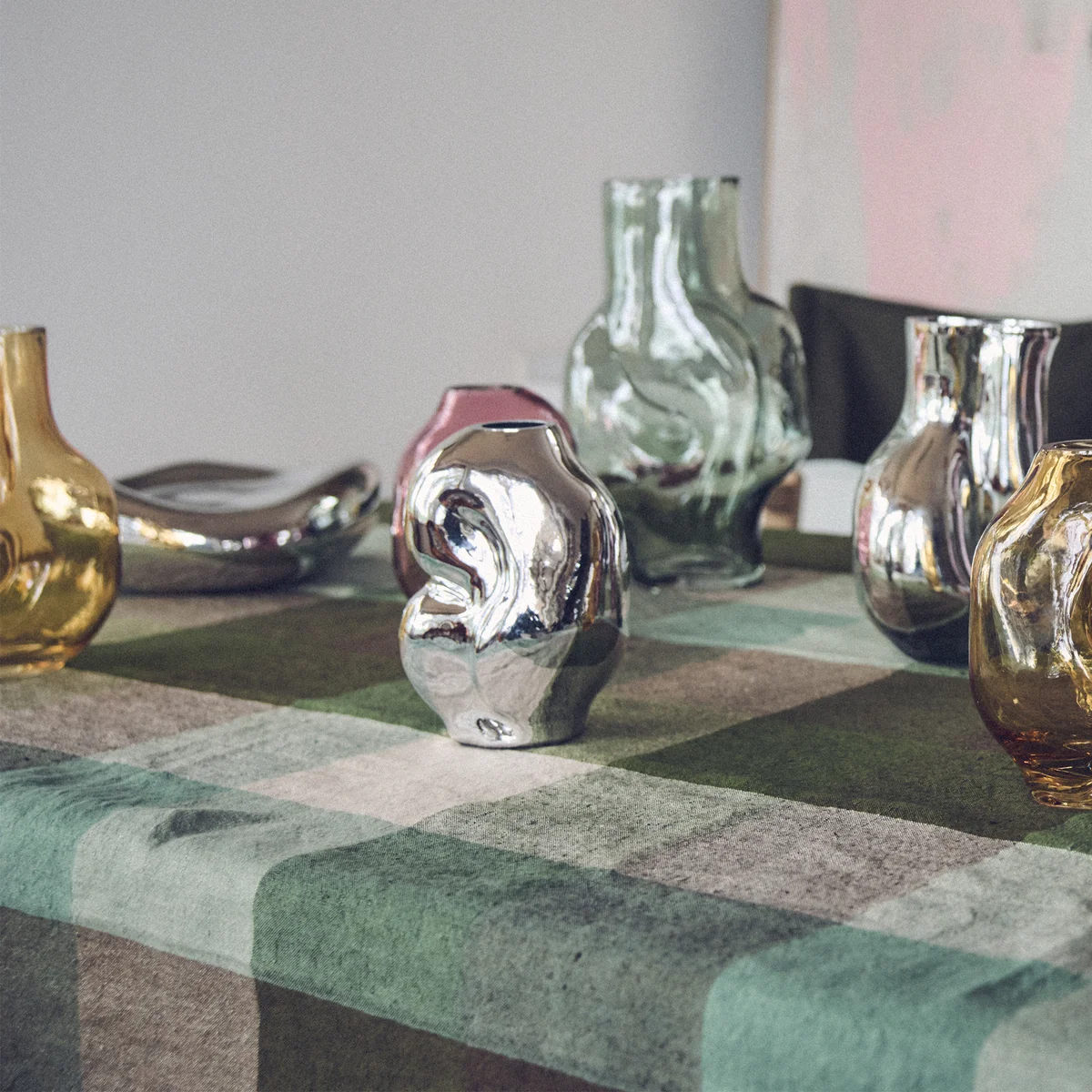 HKliving - Vida Check Tischdecke, 140 x 220 cm, mint / olive