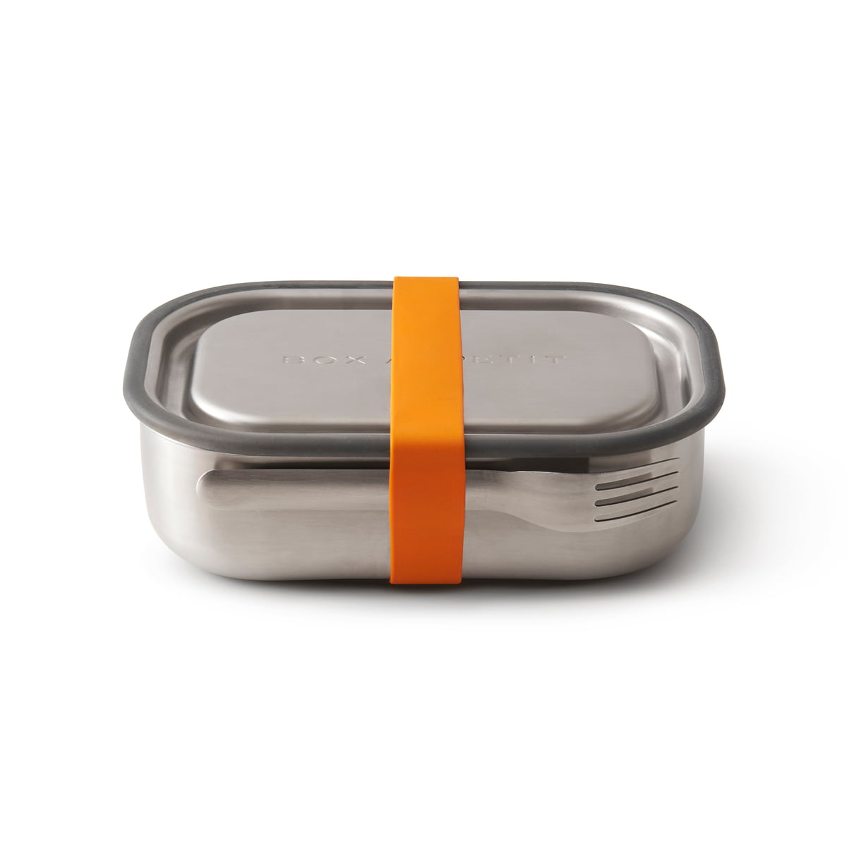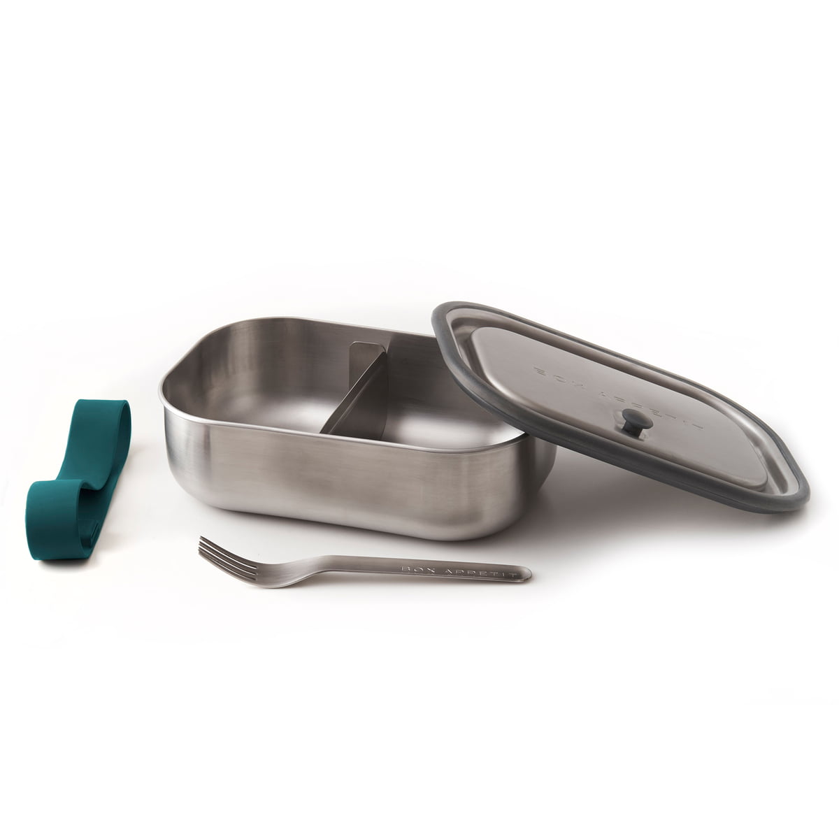Die Black + Blum Edelstahl Lunch Box ist aus BPA-freiem 18/8 Edelstahl gefertigt und mit einer Dichtung als Silikon versehen. Mit Hilfe eines Vakuumventils am Deckel lässt sich die Box fest verschließen und ist so sicher vor dem Auslaufen geschützt. Zusätzlichen Halt bietet ein Silikonriemen, der ein unbeabsichtigtes Öffnen des Deckels verhindert. Gleichzeitig hält das Band die mitgelieferte Gabel, sodass die benötigten Utensilien für ein Mittagessen im Freien sofort griffbereit sind.