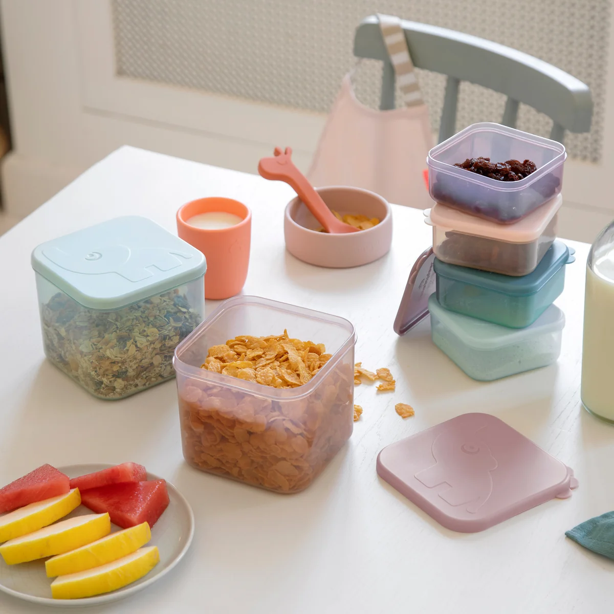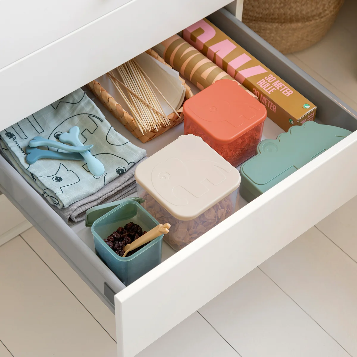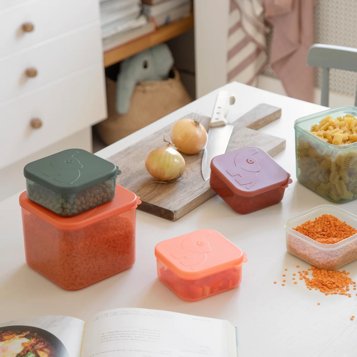 Der Done by Deer Vorratsbehälter ist ein vielseitiger und praktischer Begleiter, um Lebensmittel aufzubewahren und sie frisch zu halten. Dieser luftdichte Behälter wurde mit einer durchdachten Gestaltung entworfen, um die Lagerung von Snacks, Lebensmitteln oder anderen Kleinigkeiten bequem zu machen.