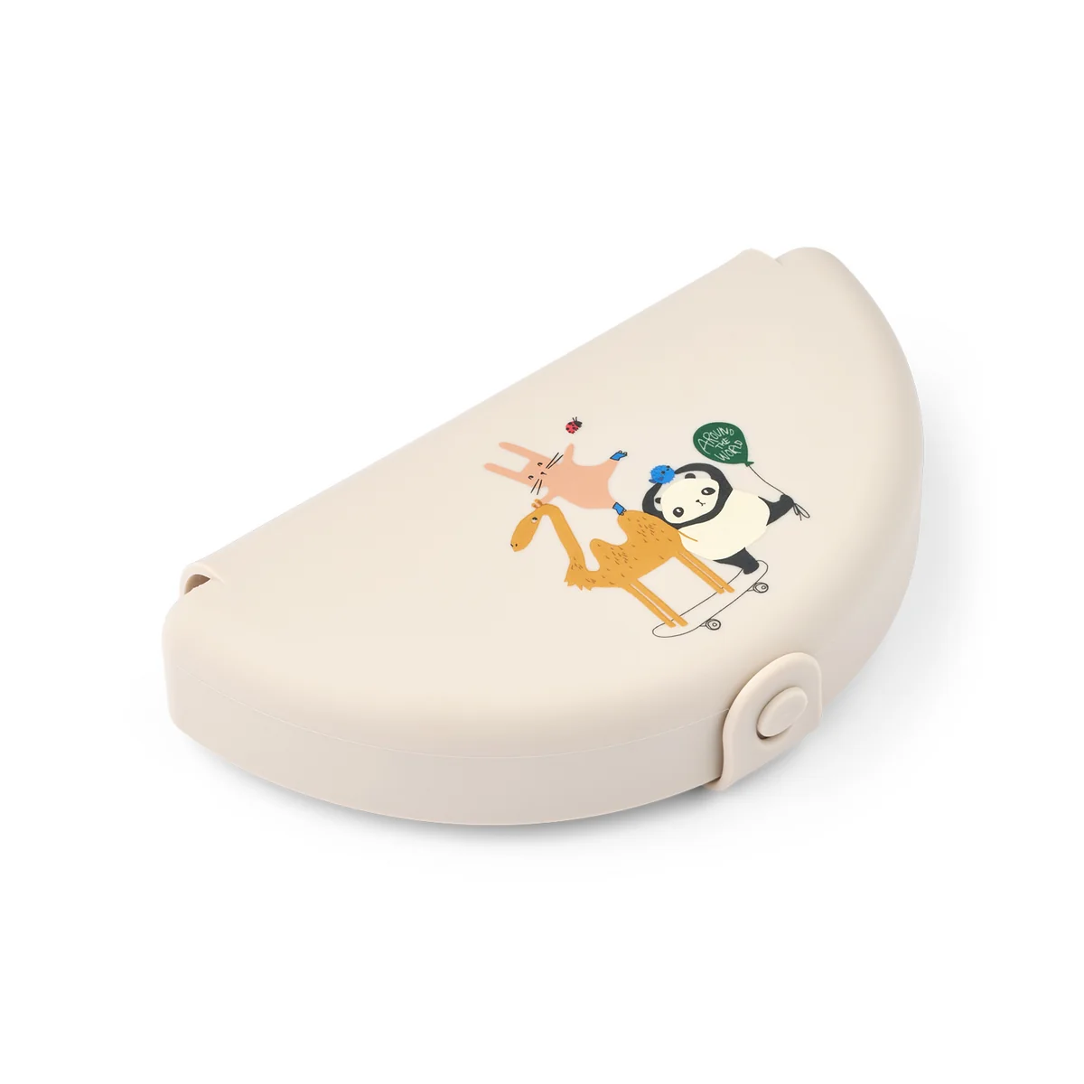 Die Eugene Snack-Box von LIEWOOD ist der ideale Begleiter für unterwegs – funktional, platzsparend und kinderleicht zu handhaben. Gefertigt aus 100% strapazierfähigem Silikon, lässt sie sich nach Gebrauch einfach zusammenfalten und passt so mühelos in jede Tasche. Eine praktische Unterteilung sorgt dafür, dass verschiedene Snacks oder Lebensmittel getrennt bleiben, während der sichere Verschluss ein Auslaufen verhindert. Perfekt für Kindergarten, Ausflüge oder den Alltag.