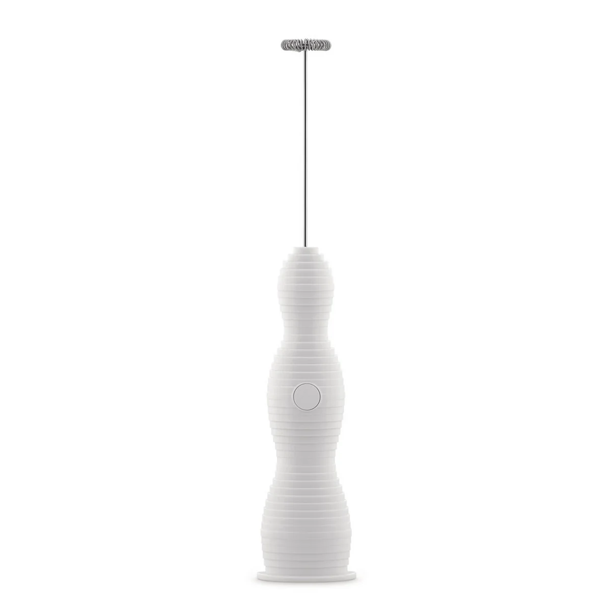 Der Pulcina Milchaufschäumer von Alessi überzeugt durch ein geometrisches Design mit leichten Wölbungen, die ihm eine gewisse Handlichkeit und Funktionalität verleihen.
