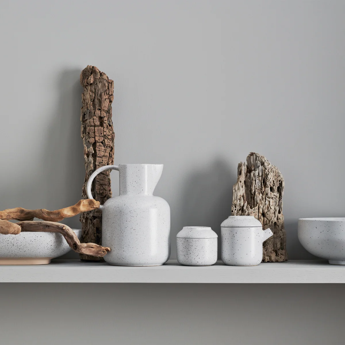Die Forma Milchkanne von Ferriani Sbolgi für Bolia ist Teil der gleichnamigen Steingutkollektion mit exquisit gefertigtem Geschirr, Kerzenhaltern, Vasen und Blumentöpfen, die alle einen einzigartigen, handwerklichen Charakter haben. Inspiriert vom minimalistischen japanischen Design und Japans reicher Designtradition, kombiniert jedes Stück eine quadratische Basis mit einer abgerundeten Oberseite, um ein harmonisches Gleichgewicht zu erreichen. Die aus langlebiger Keramik handgefertigten Stücke besitzen einen zeitlosen Charme, der über flüchtige Trends hinausgeht.