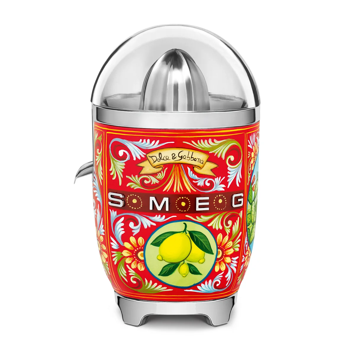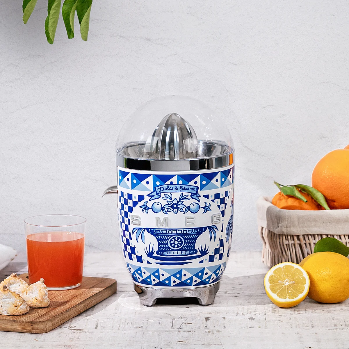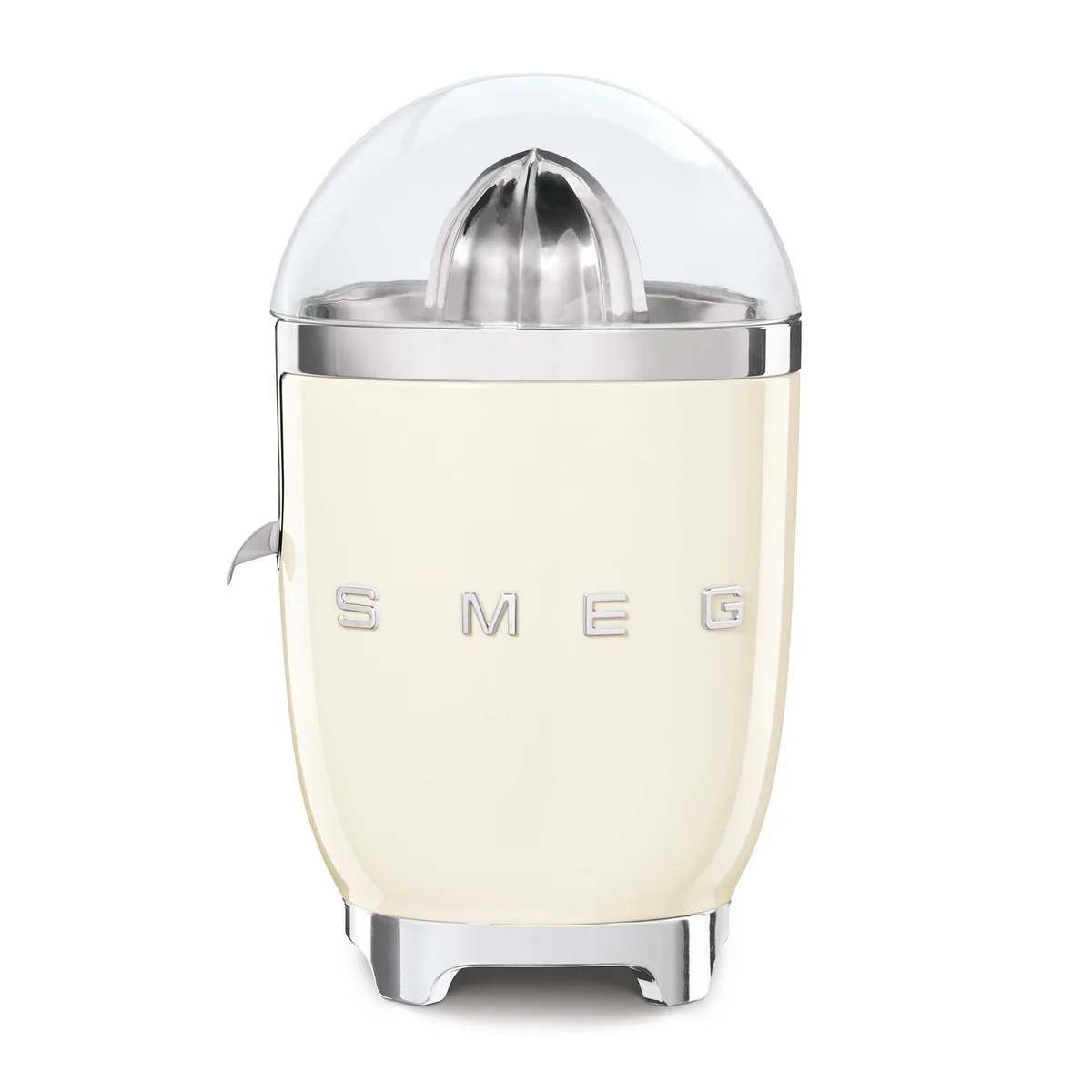 Mit der Zitruspresse CJF01 von Smeg können Zitronen, Orangen, Grapefruits und andere Citrusfrüchte ohne große Anstrengung ausgepresst werden. Frische Säfte für das Frühstück lassen sich so schnell und einfach zubereiten.