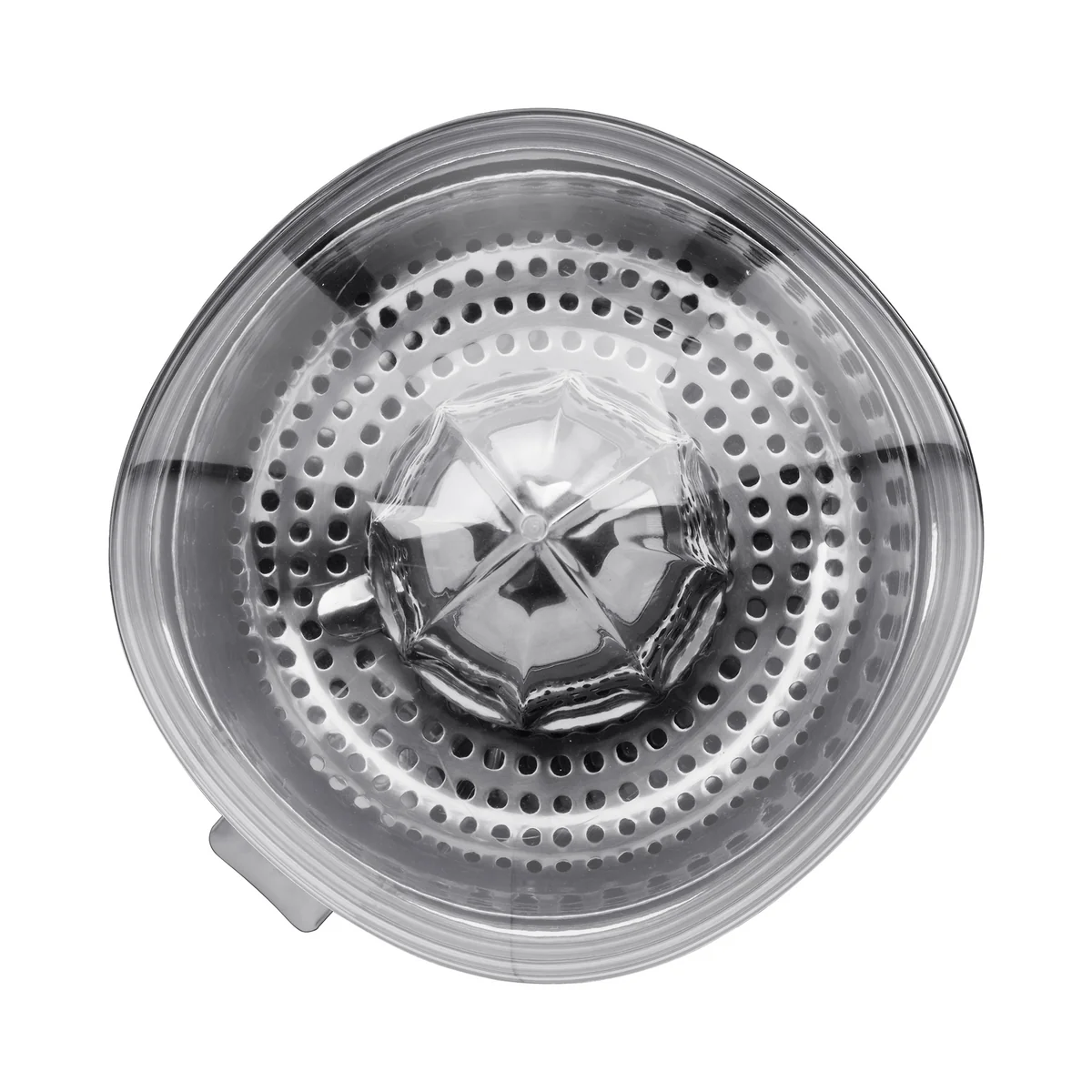 Die Schutzabdeckung sowie der Anti-Tropf-Auslauf sorgen dafür, dass der Entsaftungsvorgang vereinfacht wird. Die Fruchtpresse arbeitet automatisch bei leichtem Druck und presst den Fruchtsaft aus Grapefruits, Orangen oder Pampelmusen im Handumdrehen. Der Fruchtsaft wird in der Entsaftungsschale aus Tritan gesammelt und kann über den Auslauf in ein Glas, eine Karaffe oder eine Flasche abgefüllt werden.