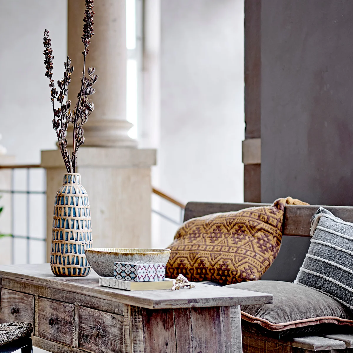 Die Fleur Salatschüssel von Creative Collection besteht aus Steingut in einer schönen Mischung aus blauen, grünen und braunen Farbtönen. Fleur bedeutet auf Französisch Blume. Blumen sind einzigartig, besonders und unterscheiden sich im Aussehen. Die Geschirrserie hat dieselben Eigenschaften; jedes Stück ist handbemalt und aufgrund der reaktiven Glasur variiert die Farbgebung innerhalb der Serie wunderschön.