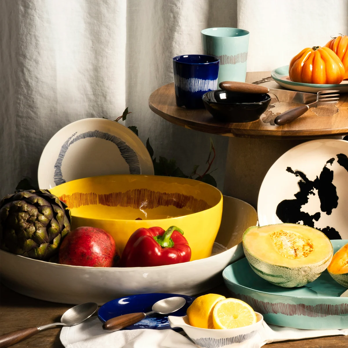 Diese glasierte Salatschale bringt frische Farbe und mediterranes Lebensgefühl auf den Tisch. Als Teil der Feast Kollektion von Yotam Ottolenghi besticht sie durch ihre ausdrucksstarke Farbgebung und das hochwertige Keramikmaterial. Jede Schüssel ist ein handveredeltes Unikat, wodurch kleine Unregelmäßigkeiten entstehen können – ein Zeichen für echte Handarbeit und Teil des besonderen Charakters der Kollektion.