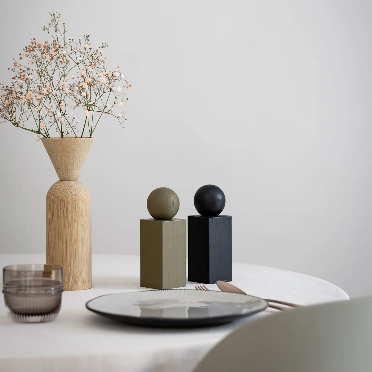Die Twist Gewürzmühle kombiniert Funktionalität und Ästhetik in Form einer skulpturalen Eichenmühle. Mit ihrem eleganten Design ist sie ein stilvoller Blickfang auf jedem Tisch und verleiht mit einer einfachen Drehung zusätzlichen Geschmack.