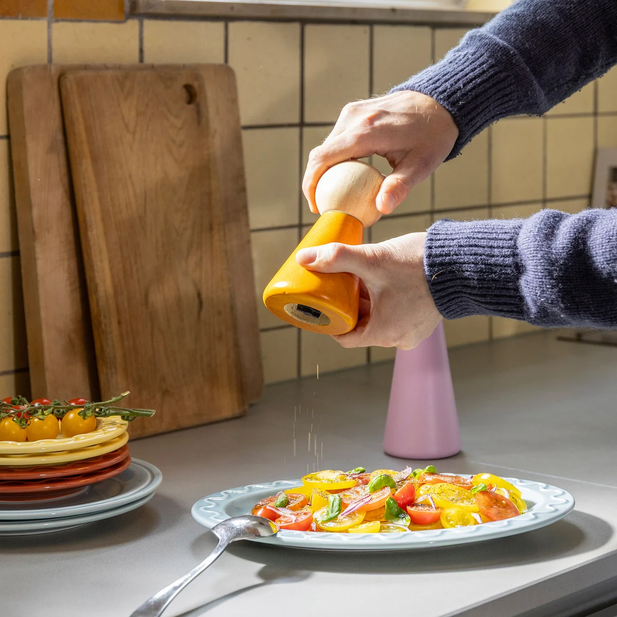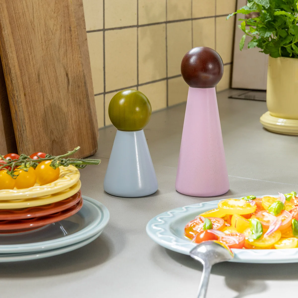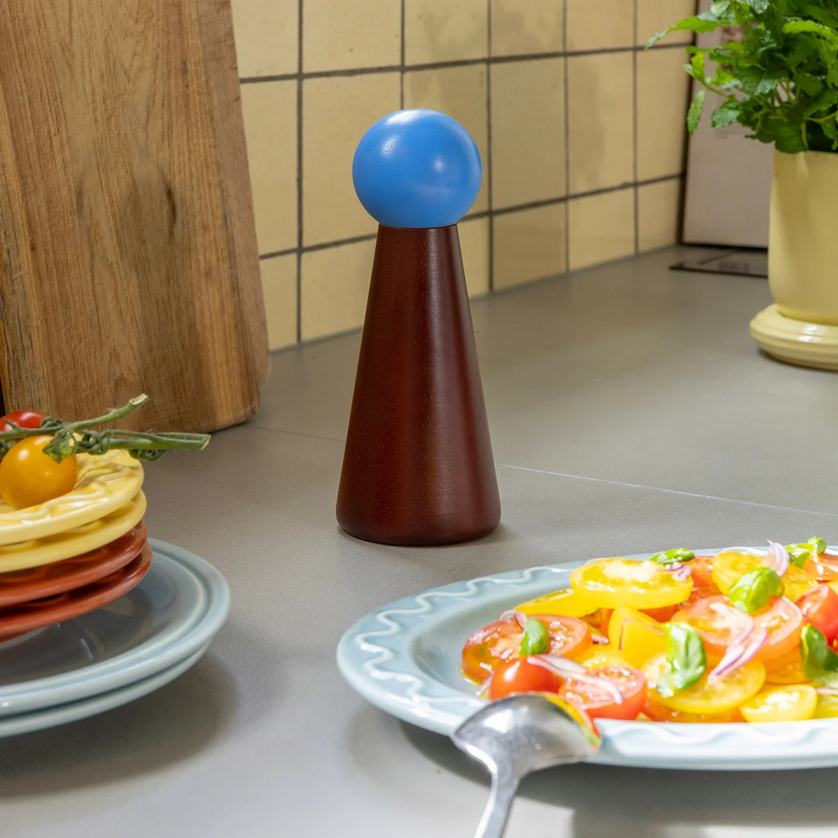 Die Salz- und Pfeffermühle Halma bringt funktionale Eleganz und spielerisches Design in die Küche. Inspiriert von klassischen Spielfiguren, sind sie in vier aufeinander abgestimmten Farben und zwei Größen erhältlich. Gefertigt aus Gummibaumholz, verfügen sie über ein langlebiges Keramikmahlwerk – für Salz oder Pfeffer gleichermaßen geeignet. Die transparente Farblasur lässt die natürliche Holzmaserung sichtbar und wird durch einen klaren, lebensmittelechten Lack geschützt. Ob einzeln oder im Set: Halma ist ein Blickfang mit praktischer Funktion.