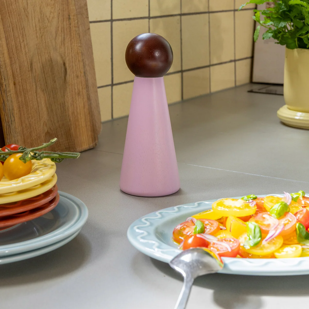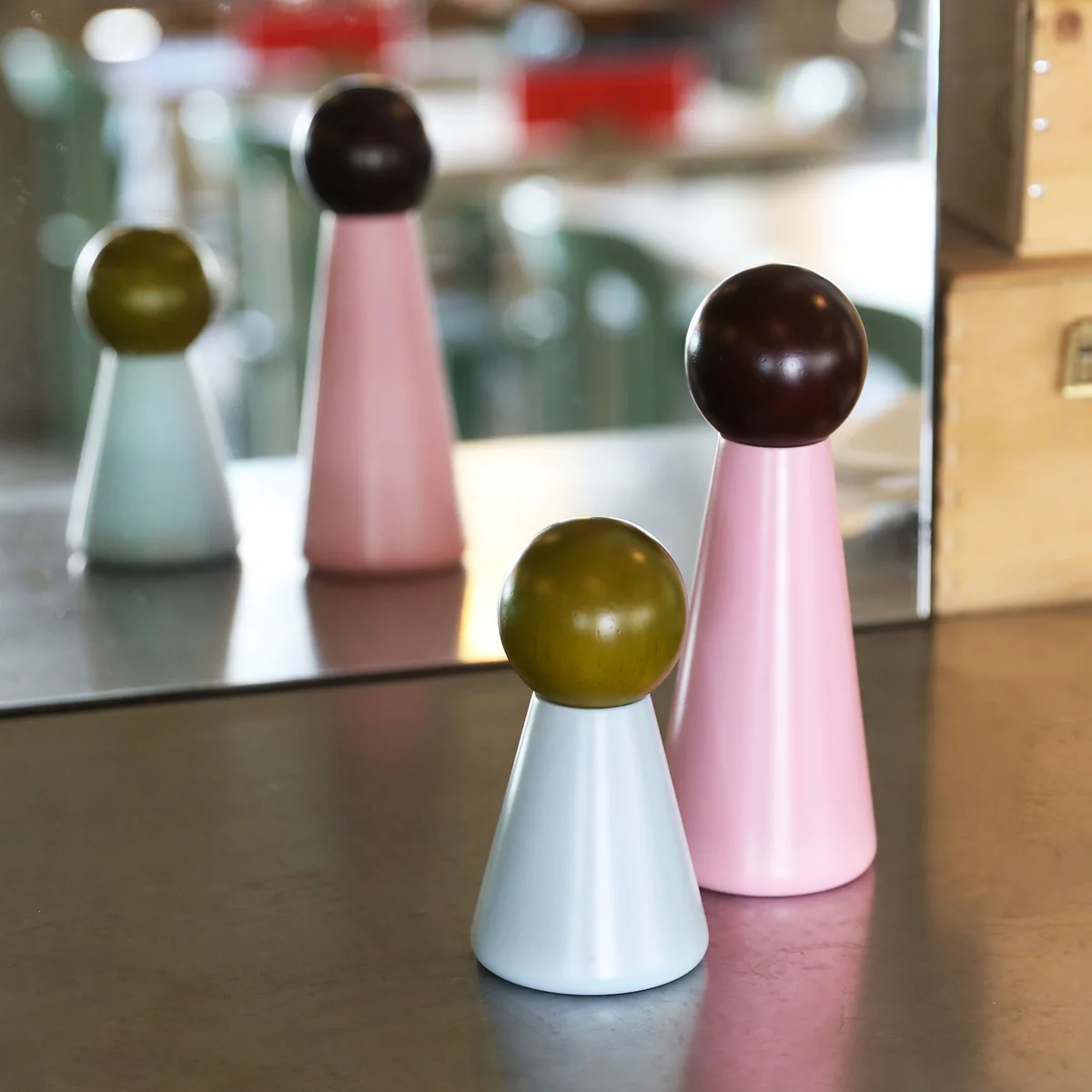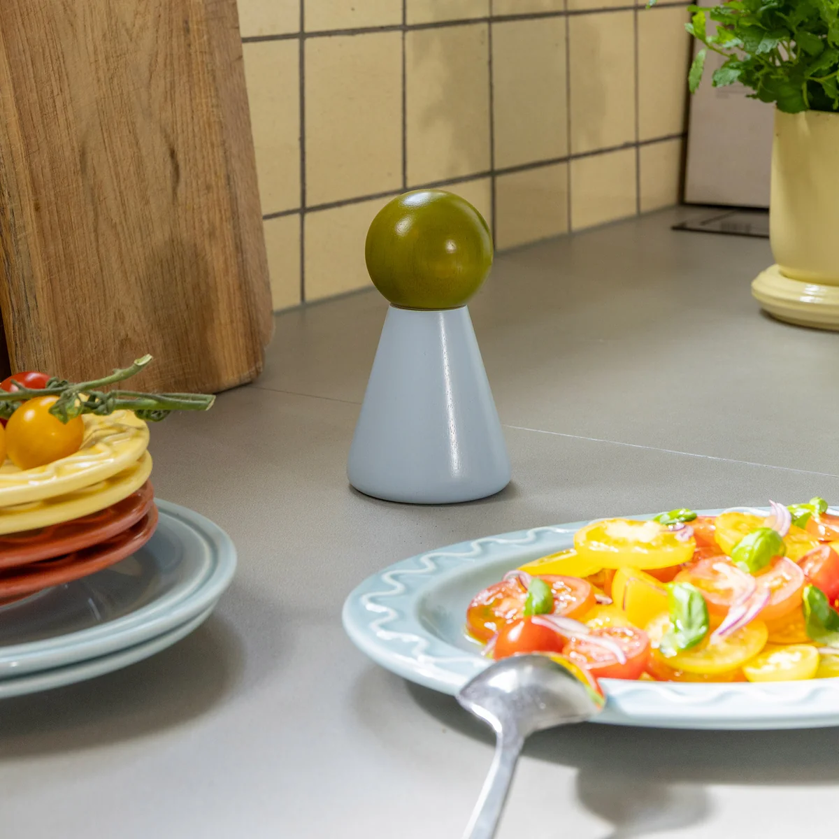 Die Salz- und Pfeffermühle Halma bringt funktionale Eleganz und spielerisches Design in die Küche. Inspiriert von klassischen Spielfiguren, sind sie in vier aufeinander abgestimmten Farben und zwei Größen erhältlich. Gefertigt aus Gummibaumholz, verfügen sie über ein langlebiges Keramikmahlwerk – für Salz oder Pfeffer gleichermaßen geeignet. Die transparente Farblasur lässt die natürliche Holzmaserung sichtbar und wird durch einen klaren, lebensmittelechten Lack geschützt. Ob einzeln oder im Set: Halma ist ein Blickfang mit praktischer Funktion.