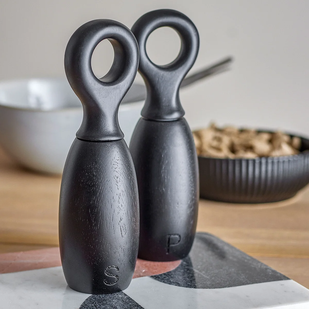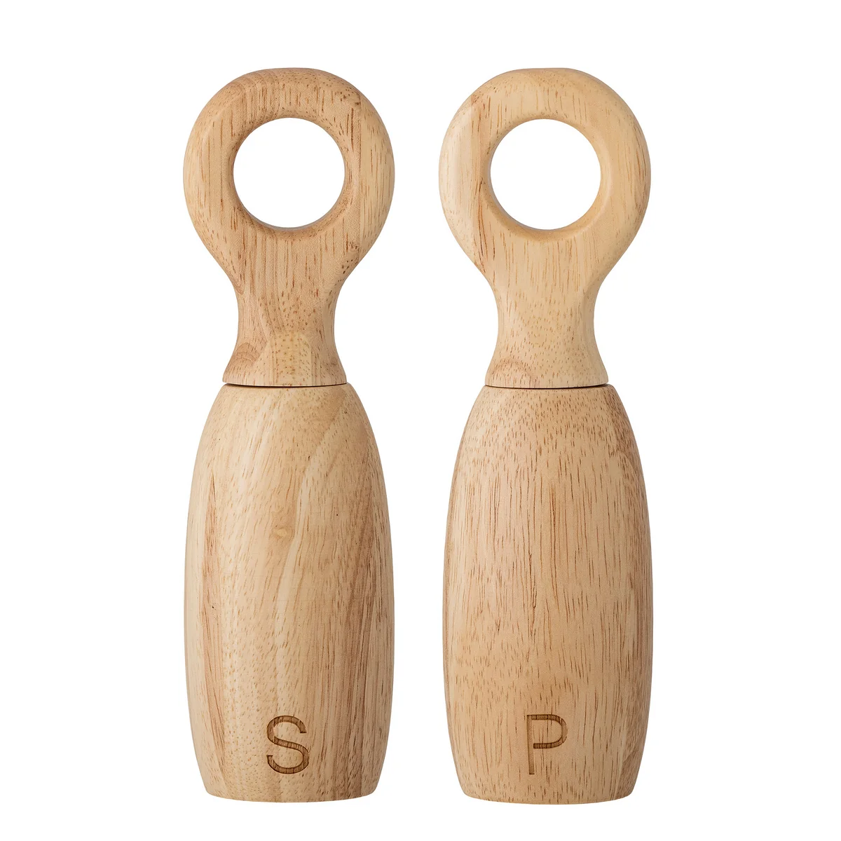 Die Salz- und Pfeffermühlen Martim von Bloomingville sind im Set erhältlich. Die ansprechenden Mühlen sind aus Gummibaumholz gefertigt und haben einen großen runden Griff, der sich leicht drehen lässt. Die Salz- und Pfeffermühlen sind äußerst dekorativ auf dem Küchentisch oder dem Esstisch.