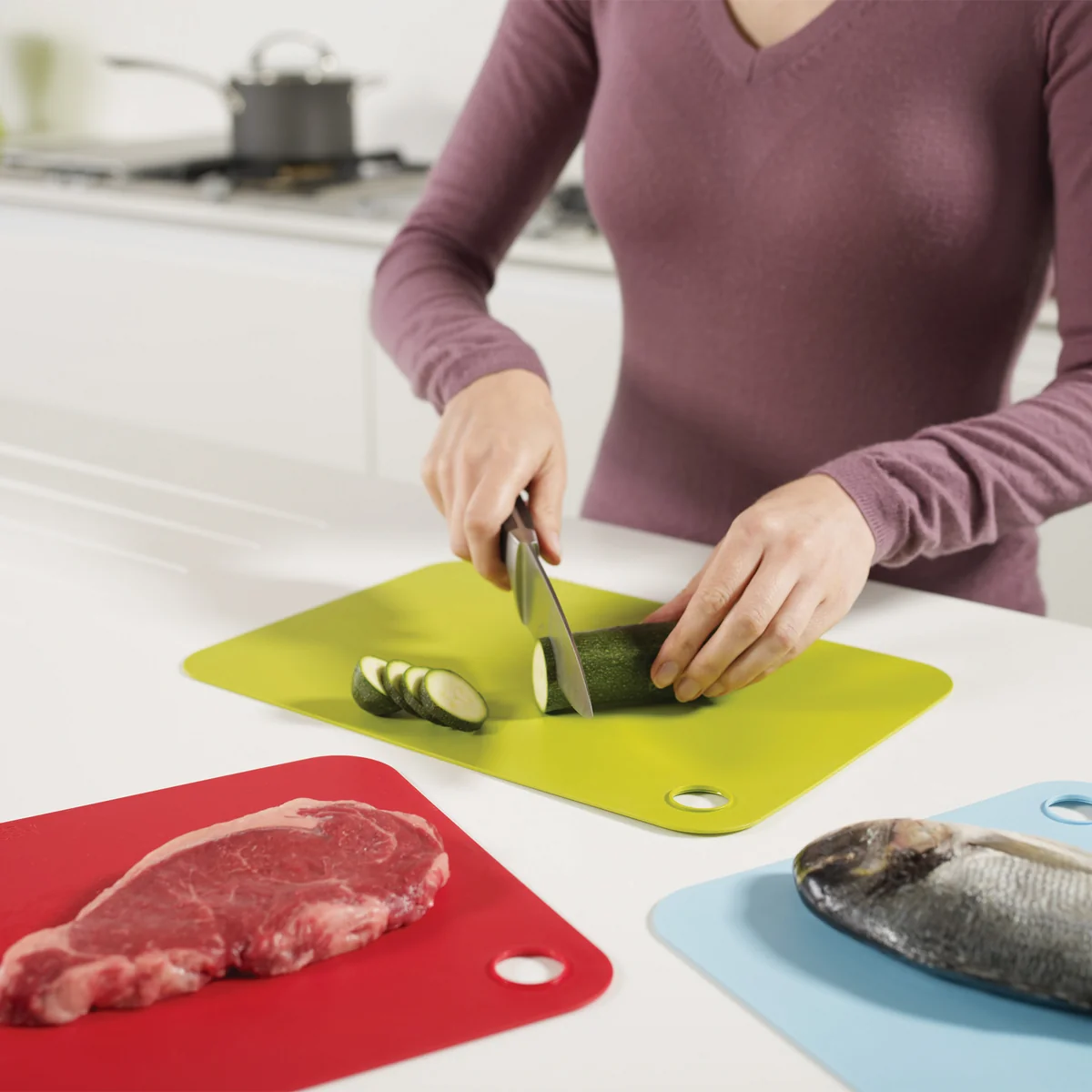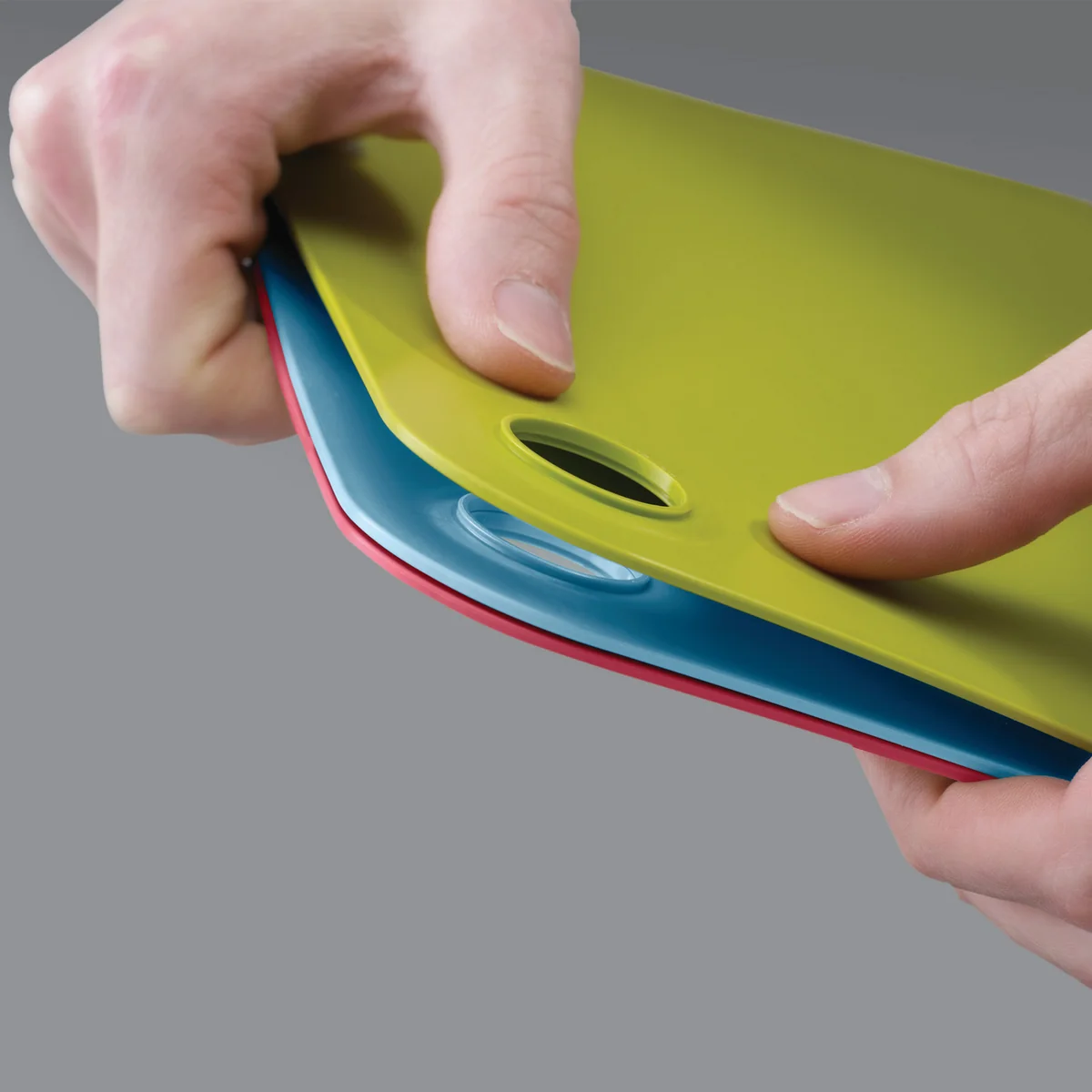Das Pop Schneidebrett-Set von Joseph Joseph ist perfekt geeignet, um eine Vielzahl von Aufgaben bei der Speisezubereitung zu übernehmen.