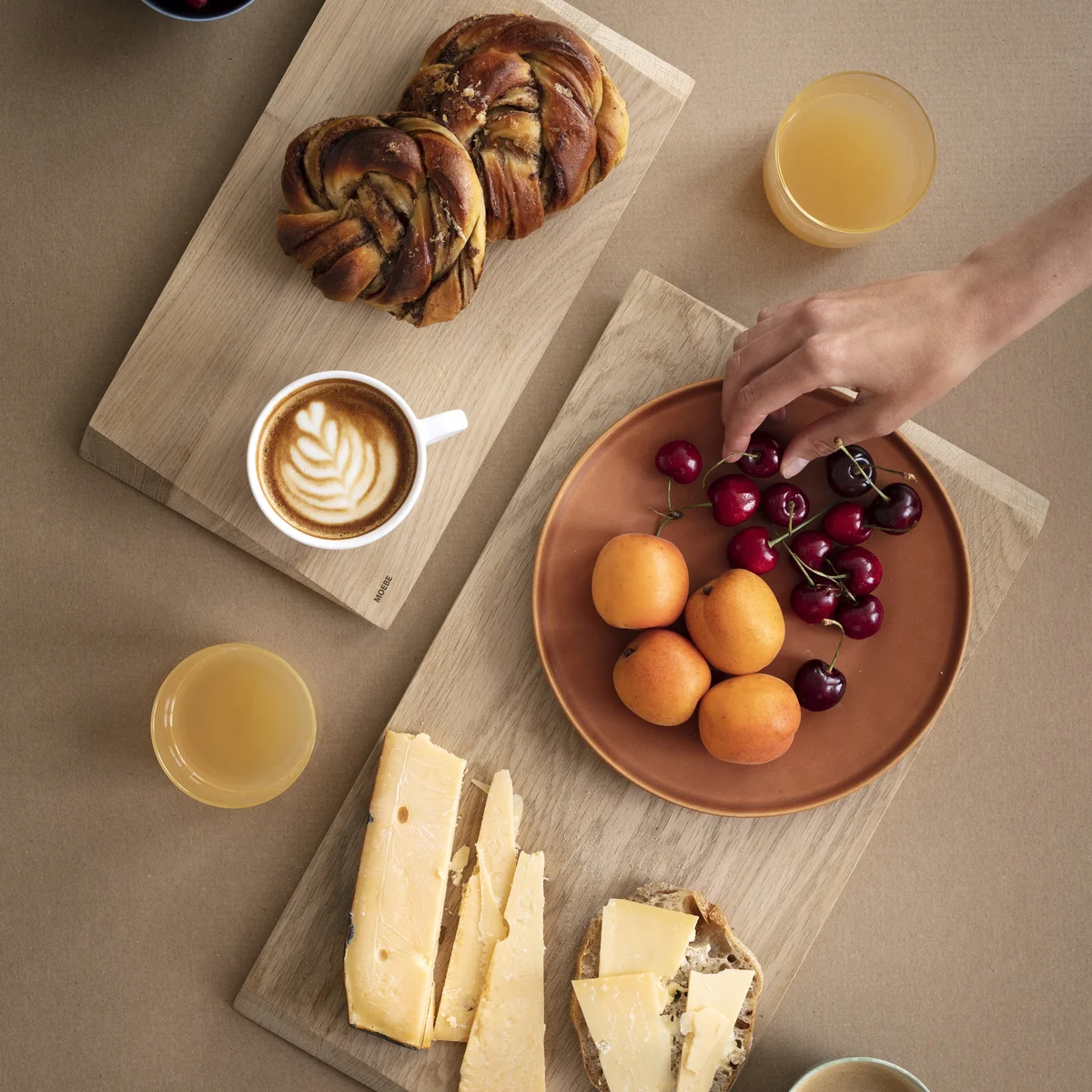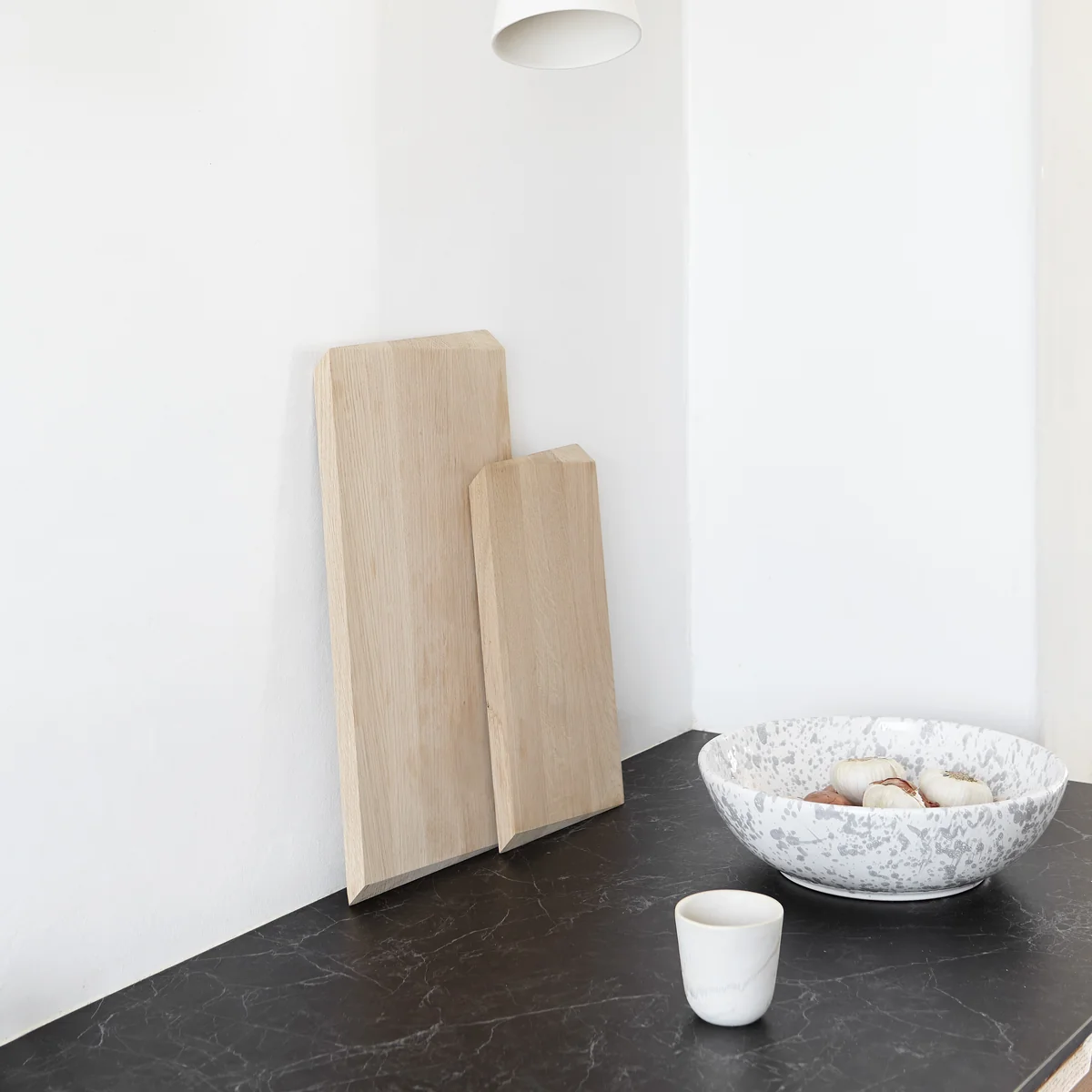 Das Schneidebrett von Moebe ist genau das, was der Name verspricht: Ein wunderschönes Stück Holz, das sich zum Schneiden von Speisen und ebenso zum Servieren eignet. Mit dem Schneidebrett kehrt der skandinavische Hersteller zurück zu den Wurzeln des Designs: Form folgt Funktion. Das stabile Massivholz ist an den Kanten angeschrägt, was dem Brett einen stilvollen Touch verleiht und das Aufheben vom Tisch erleichtert.