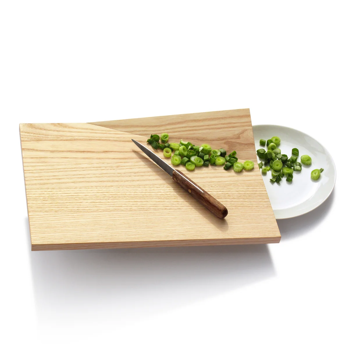 Das Schneidebrett wird aus Eschenholz hergestellt und ist in verschiedenen Größen erhältlich.