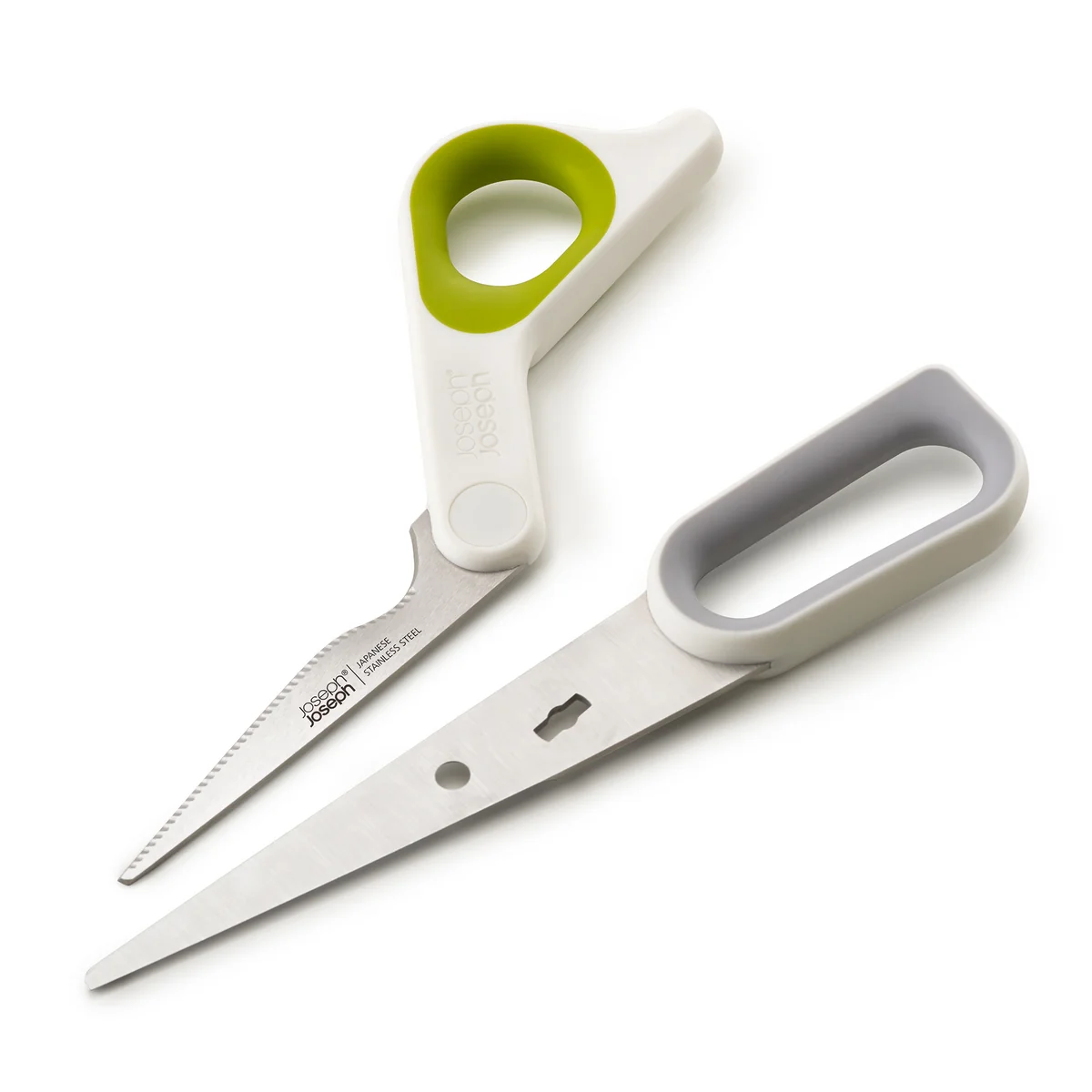 Die Powergrip Küchenschere von Joseph Joseph eignet sich ideal für die Küche zum Schneiden und Zubereiten von Lebensmitteln. Mit einem integrierten Daumengriff kann die Schere auch mit beiden Händen benutzt werden, wodurch mehr Kraft aufgewendet werden kann. So ist die Schere auch optimal dafür geeignet, um Hühnerknochen oder Holzspieße zu durchtrennen.
