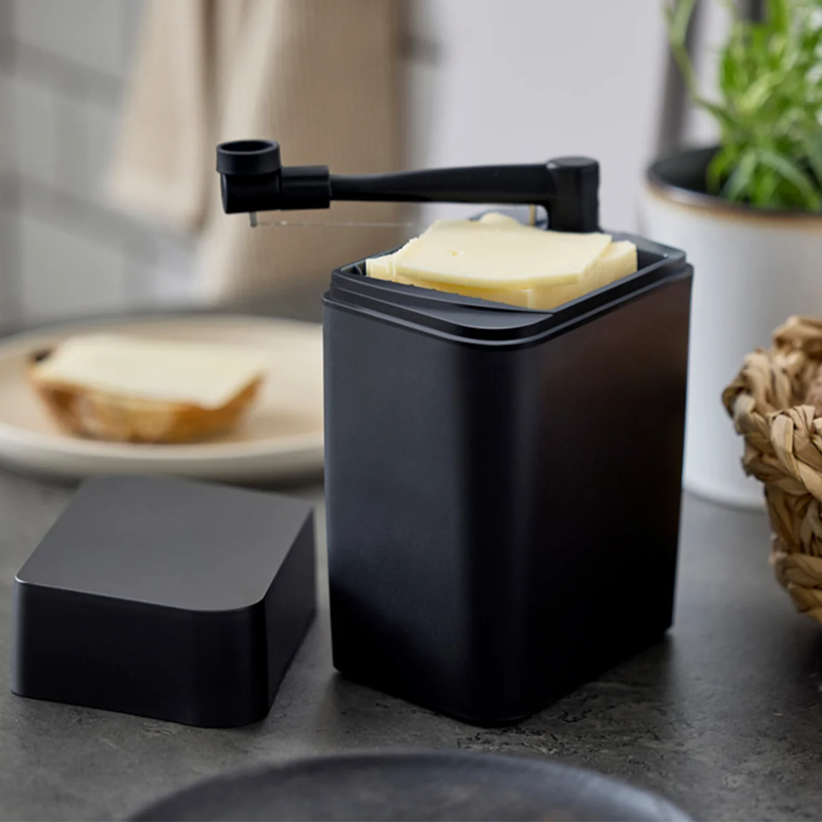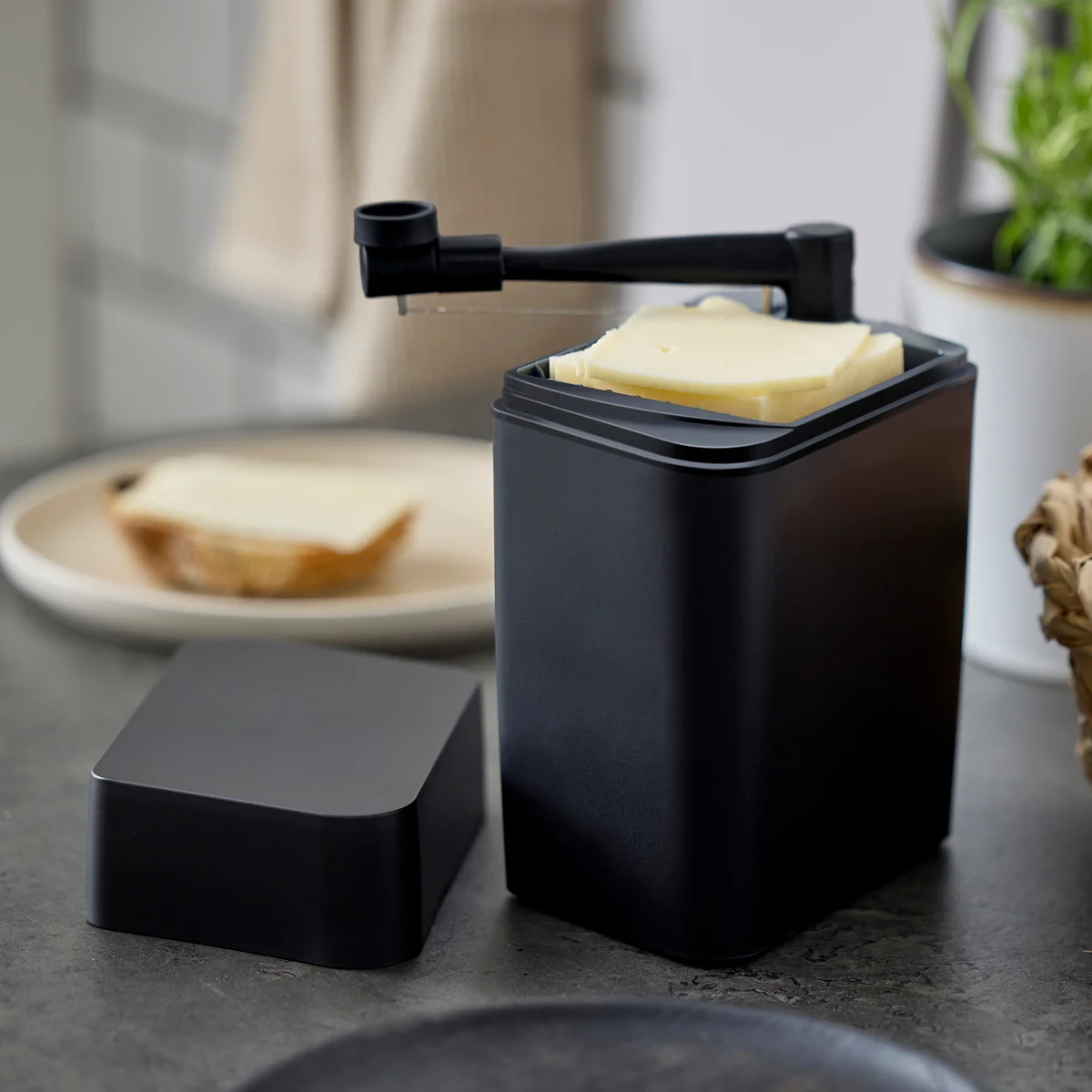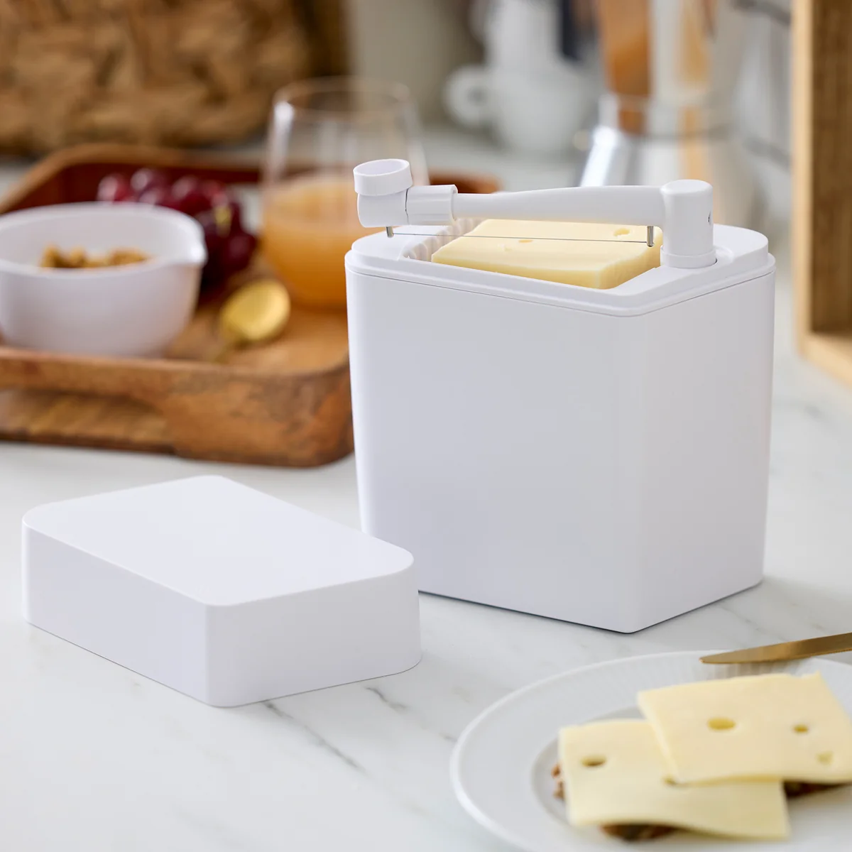 Die Classic Käsebox mit integriertem Käseschneider von Rosti garantiert eine hygienische Aufbewahrung und Verwendung, da der Käse nicht mehr angefasst werden muss. Nach dem Schneiden wird der Boden hochgeklappt, so dass der Käse immer für den nächsten Leckermäulchen zugänglich ist. Der Schneidedraht ist bei Bedarf austauschbar.