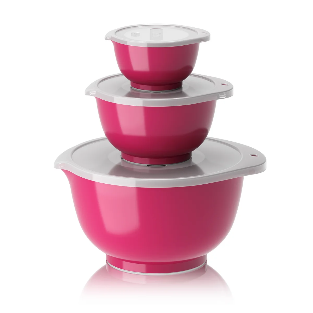 Das Margrethe Rührschüssel-Set von Rosti besteht aus mehreren Rührschüsseln mit jeweils passenden Deckeln, die ineinander stapelbar sind. Sie bestehen aus BPA-freiem Melamin, einem hochwertigen Kunststoff, der stabil, leicht, kratzunempfindlich und hitzebeständig ist. Außerdem können die Schüsseln bedenkenlos in der Spülmaschine verwendet werden.