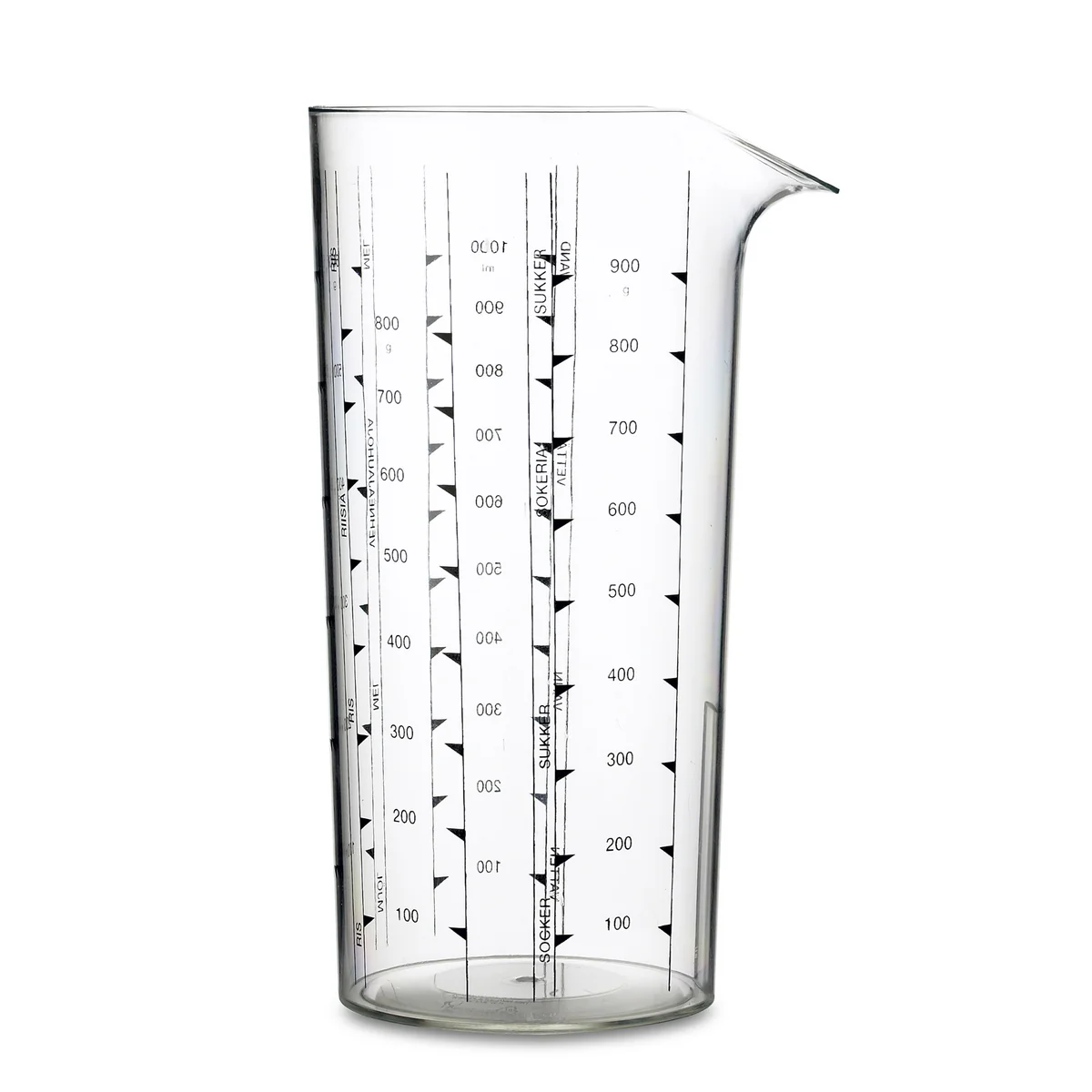 Die Messbecher von Rosti sind echte Küchenhelfer: Sie besitzen eine deutlich ablesbare Skala in verschiedenen Maßeinheiten. Um Platz zu sparen, haben sie keinen Handgriff, sind aufgrund des kleinen Durchmessers aber trotzdem gut und bequem anzufassen.