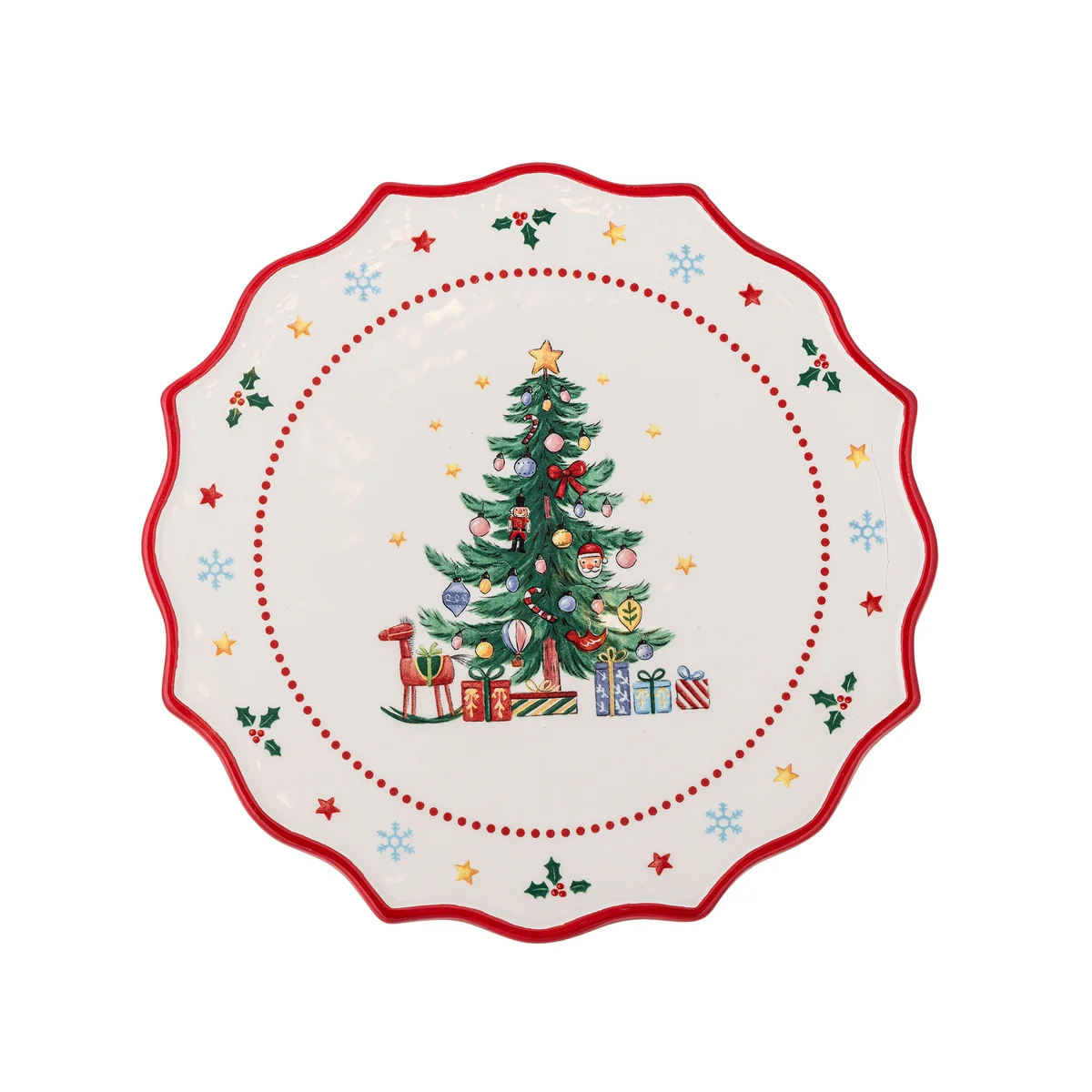 Bloomingville - Naive Kuchenteller, Ø 21 × H 9 cm, weiß / rot