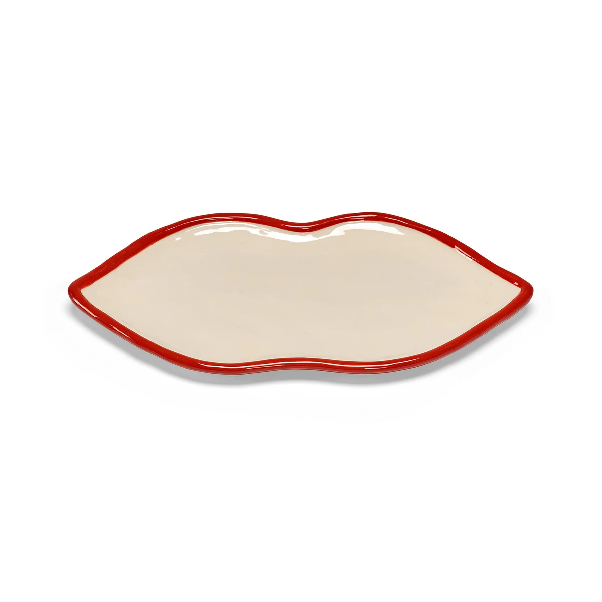 - Gefertigt aus glasiertem Steingut in Lippenform