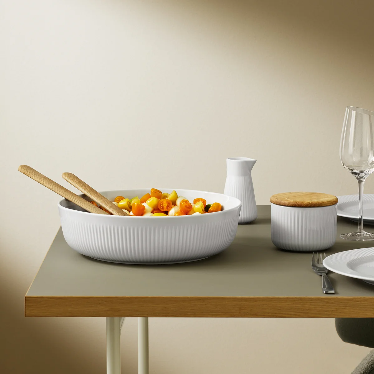 Mit der Legio Nova Schüssel von Eva Trio lassen sich Salate, Pasta, Reis, Snacks und vieles mehr stilvoll anrichten. Die Schale mit einem Fassungsvermögen von 3,3 l gehört zu der Legio Nova Serie und überzeugt durch das zeitlose Rillenmuster. Die Geschirrserie wurde von der dänischen Kochnationalmannschaft getestet und wird von ihr empfohlen.