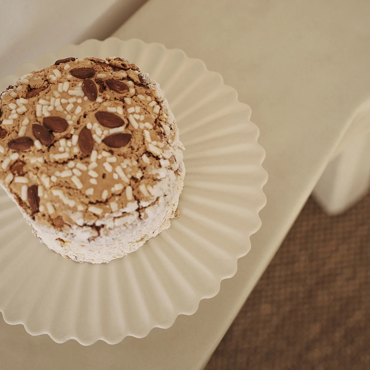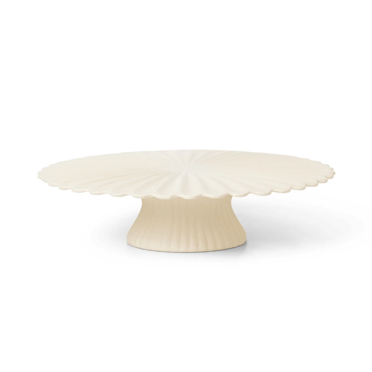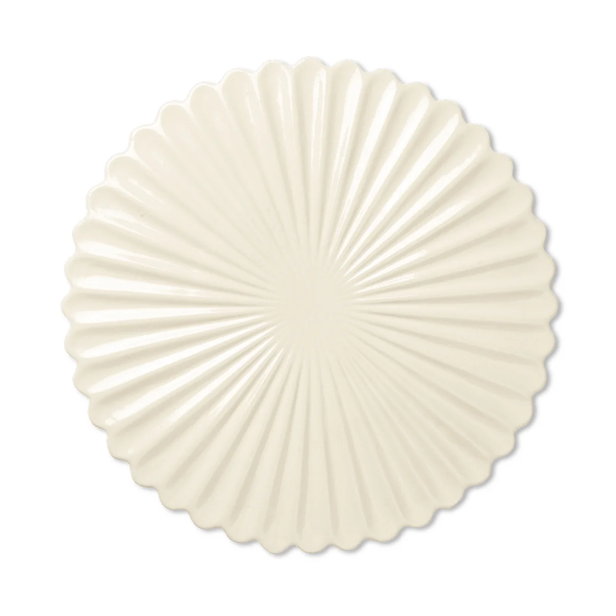Die skulpturale Fountain Tortenplatte vom Ferm Living aus Keramik zieht sofort die Aufmerksamkeit auf sich und ist ein eleganter Dessertständer mit einem zarten, gefächerten Design. Inspiriert von der Form traditioneller Brunnen, dient er als atemberaubendes Mittelstück für eine Hochzeitsfeier, als reizvolle Ergänzung für eine Teeparty oder als stilvoller Akzent für die Küchentheke. Die Platte hat eine glasierte Oberfläche, die sich leicht reinigen lässt