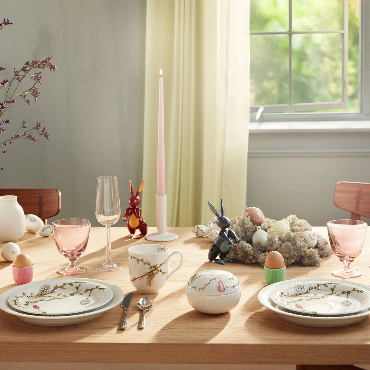 Die Produkte der Hammershøi Ostern-Reihe sind spülmaschinenfest. Das Design wird auf Tassen, Bonbonniere und dekorative Artikel übertragen. Somit können sie zu einem individuellen Set kombiniert werden.