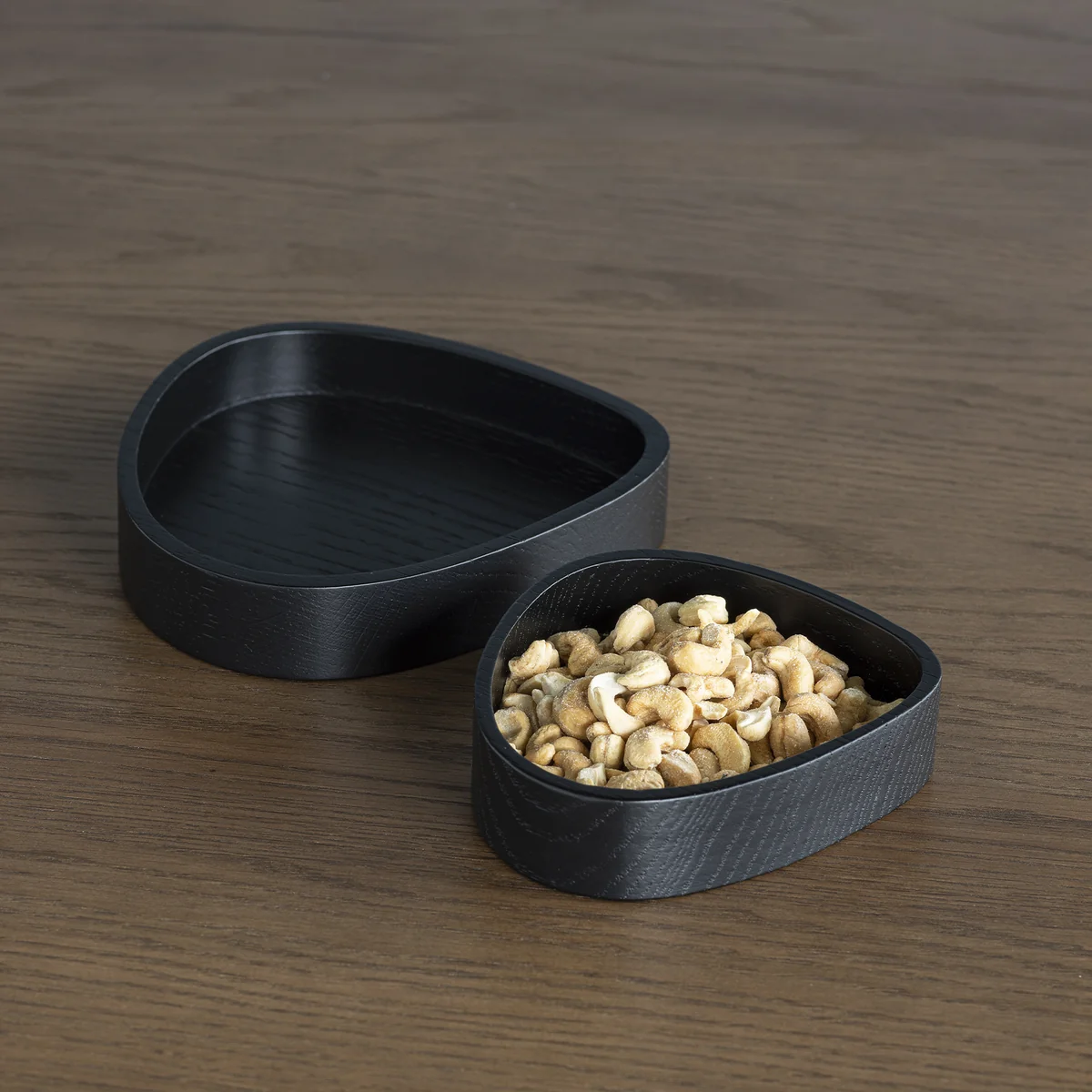 Die Wood Box von Lind DNA ist eine multifunktionale Aufbewahrung für viele kleine Wohnaccessoires. Oder aber eine besondere Servierschale für Lebensmittel und Speisen. Die lebensmittelechten Schalen sind in verschiedenen Formen erhältlich, die sich auf jedem Tisch dekorativ arrangieren lassen. In ihnen können Tapas, Obst, Kekse, Gebäck und vieles mehr stilvoll angerichtet werden. Auch als Schale im Flur für Schlüssel und Brille eignen sich die kleinen Boxen hervorragend.
