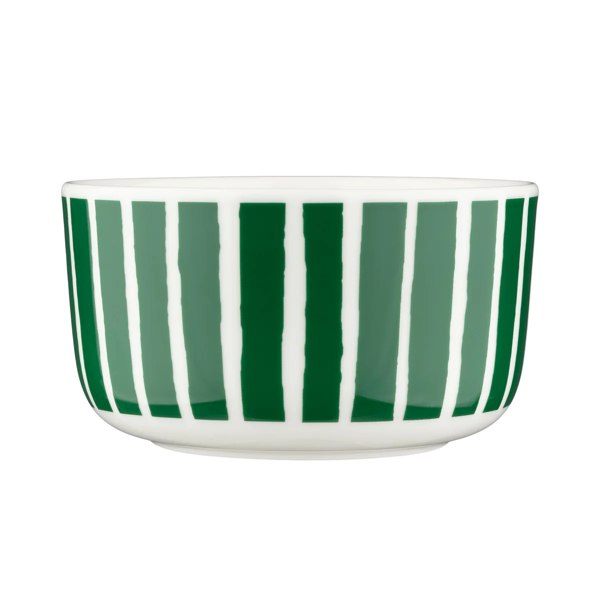 Die Oiva Piccolo Schale von Marimekko ist aus weißem Steingut gefertigt, das spülmaschinen-, ofen-, mikrowellen- und gefrierfest ist.