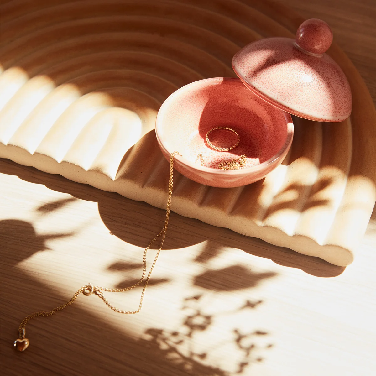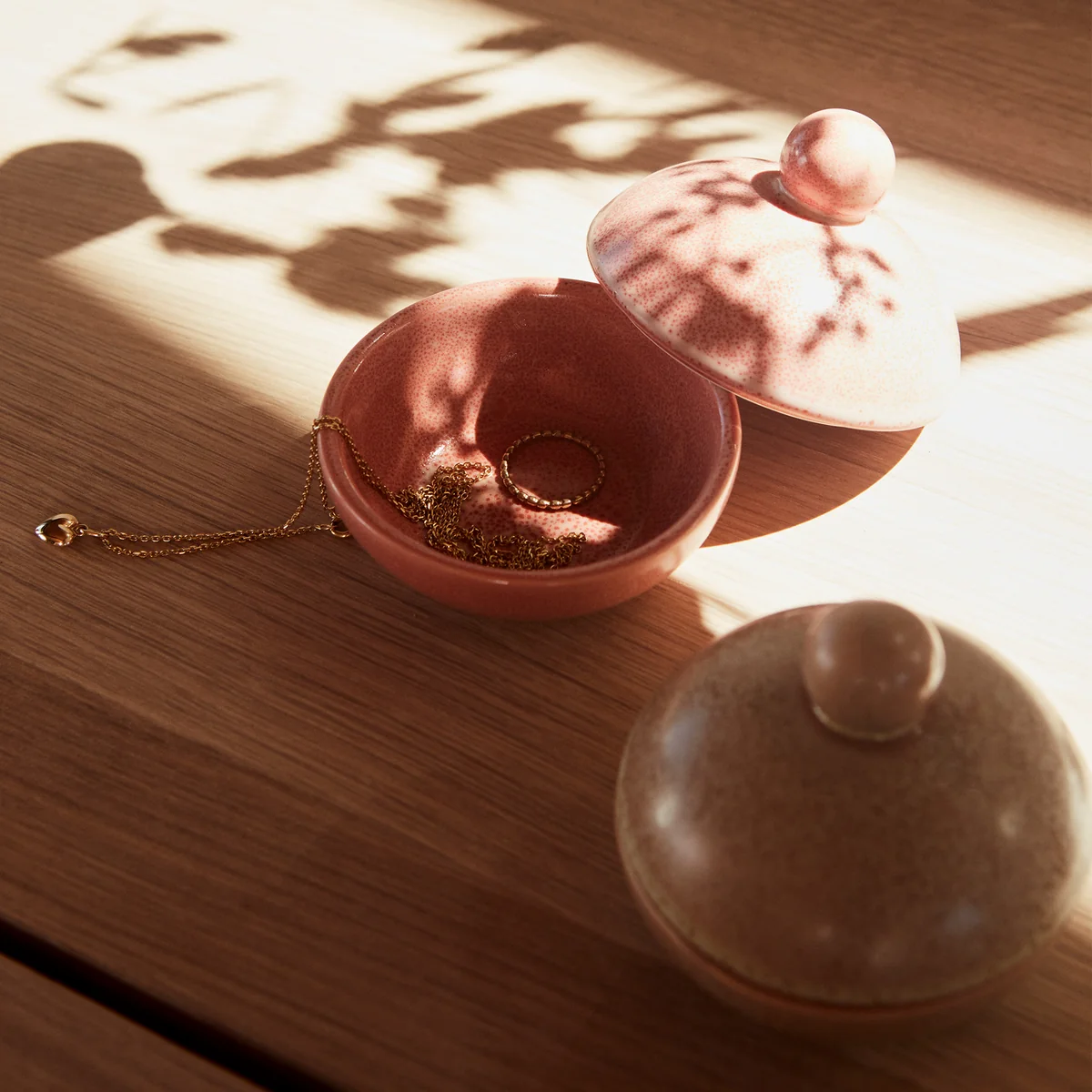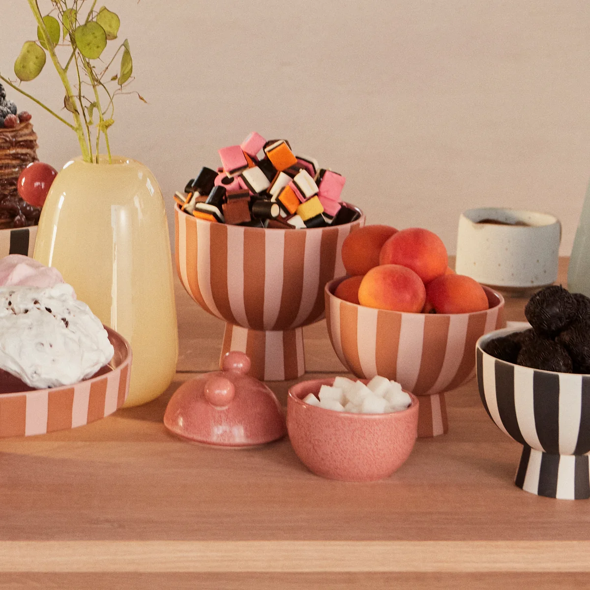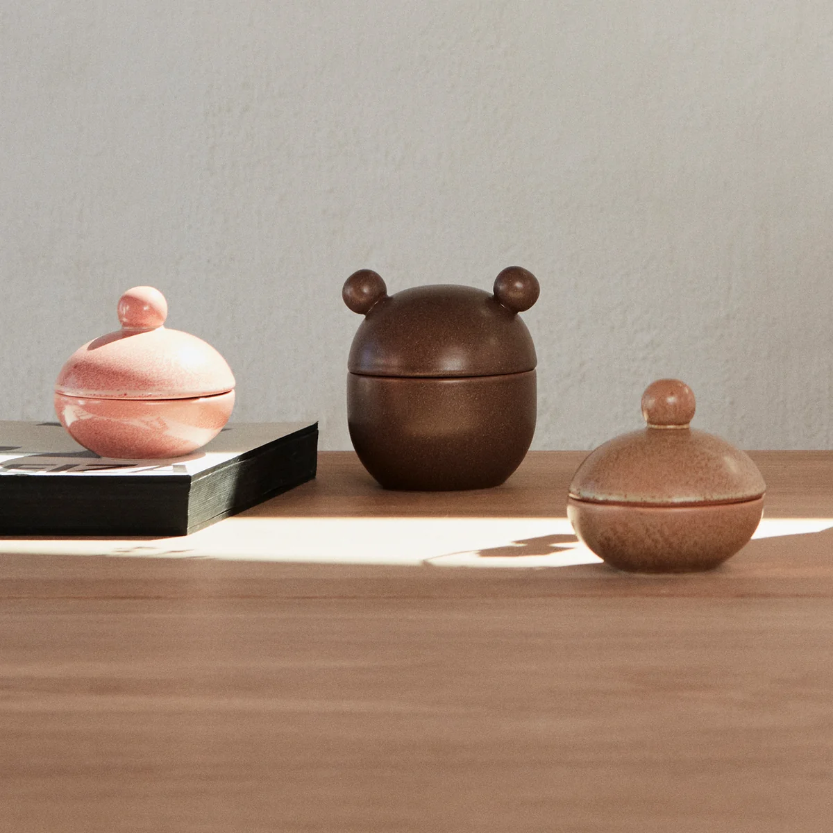 In der Saga Bonbonniere von OYOY lassen sich neben den Lieblingssüßigkeiten auch Schmuck und andere kleine Schätze verstecken. Das Gefäß aus Steingut überzeugt mit fröhlichen Farben und niedlichen Details am Deckel. Es ist zudem lebensmittelecht, sodass auch unverpackte Süßigkeiten in Saga aufbewahrt werden können. Die verschiedenen Varianten können wunderbar kombiniert werden.