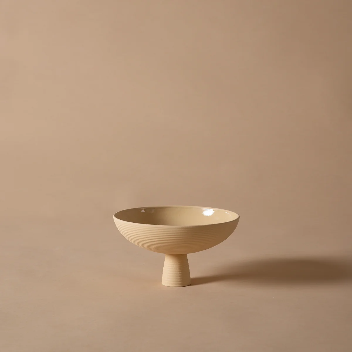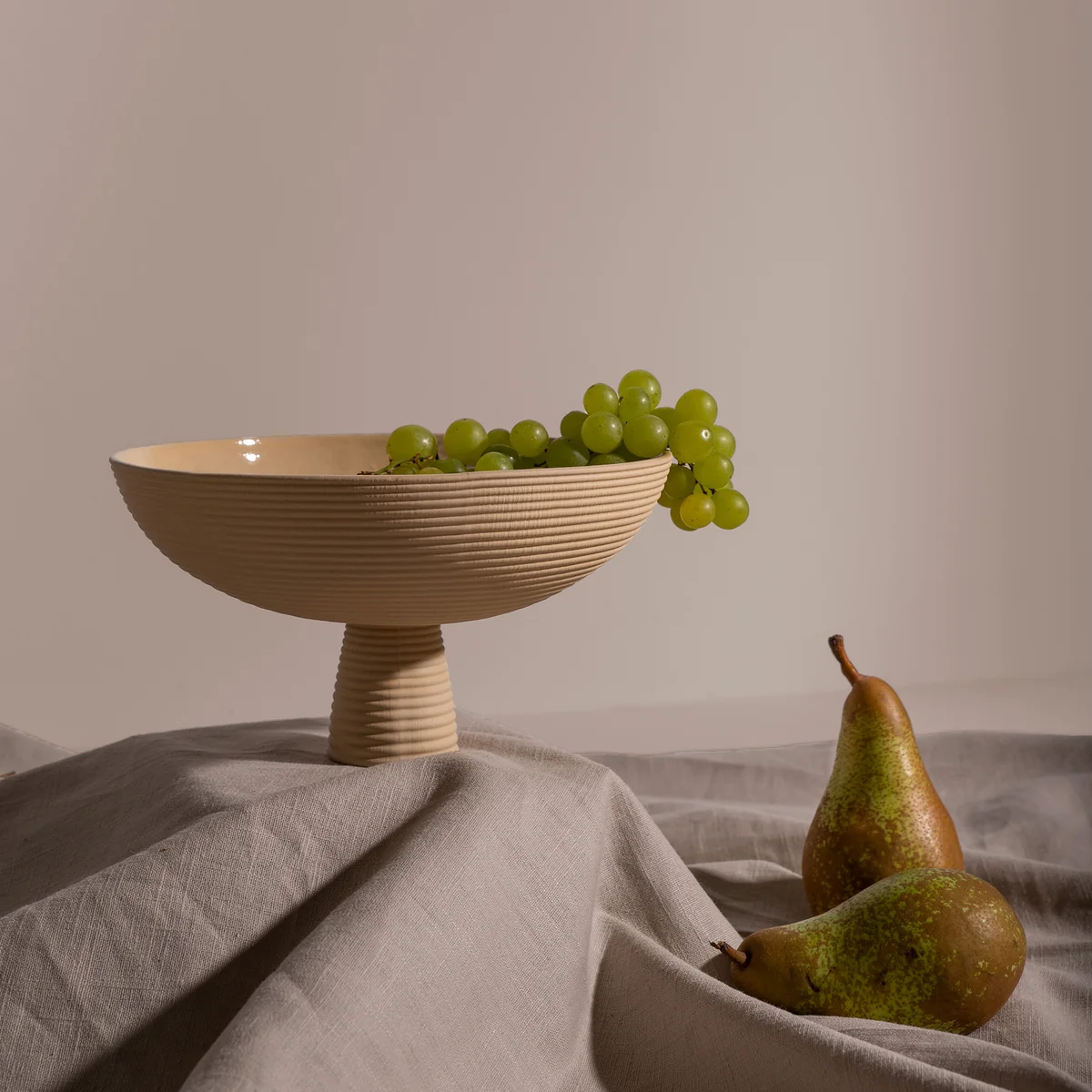 Die Dais Schale von Schneid wurde 2019 von Julia Jessen im Schneid Design-Studio entworfen. Die kurvige Silhouette und rhythmische Struktur der Dais Schale mit Fuß spielen auf die Ästhetik von Topografie und Architektur an. Raffinierte Details und charakteristische Konturen betonen ein poetisches Gefühl für Formen, wodurch die Schale einen ruhigen und ausbalancierten Charakter bekommt.