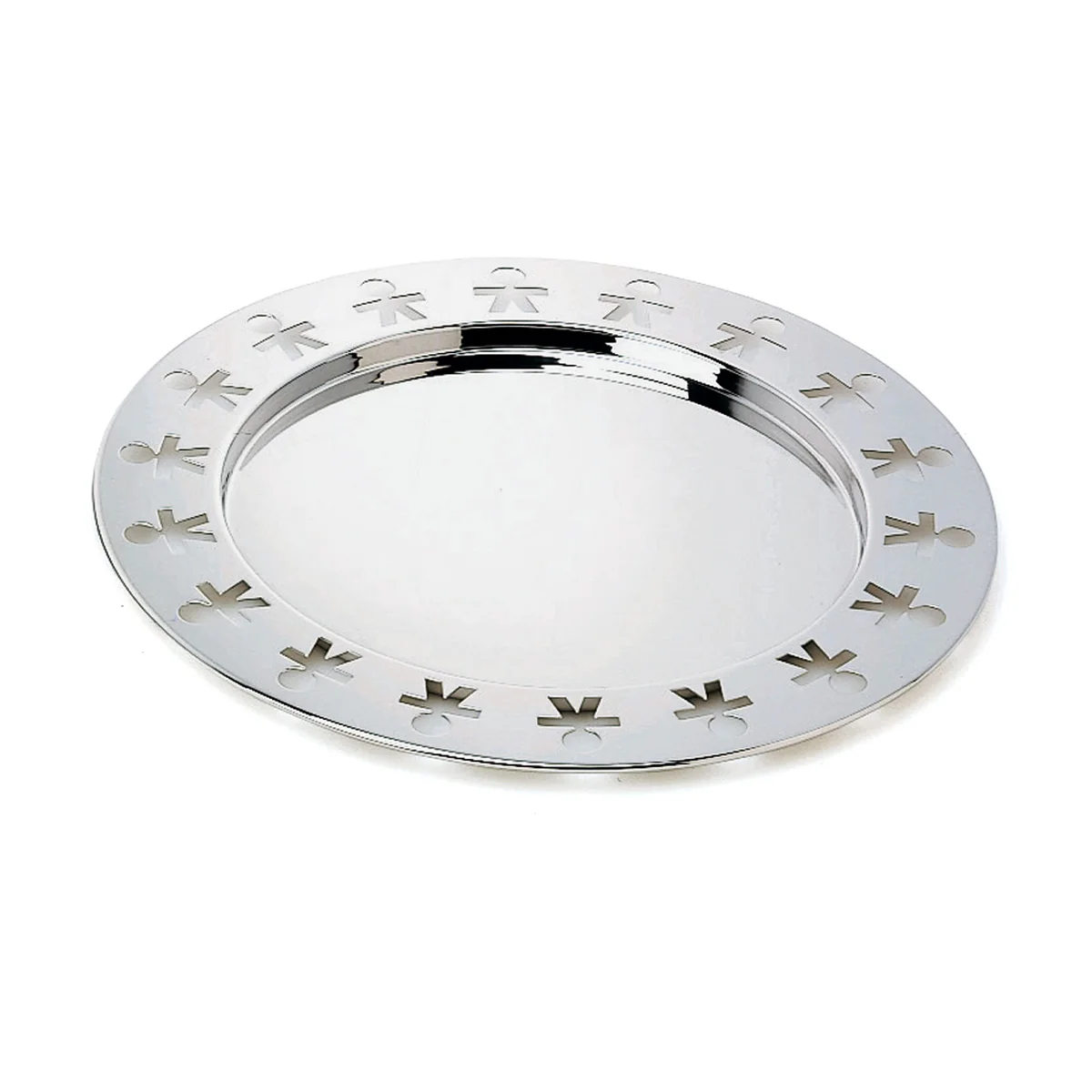 Die Girotondo Platte von A di Alessi ist ein rundes Tablett mit den bekannten Männchen der King-Kong-Designer.
