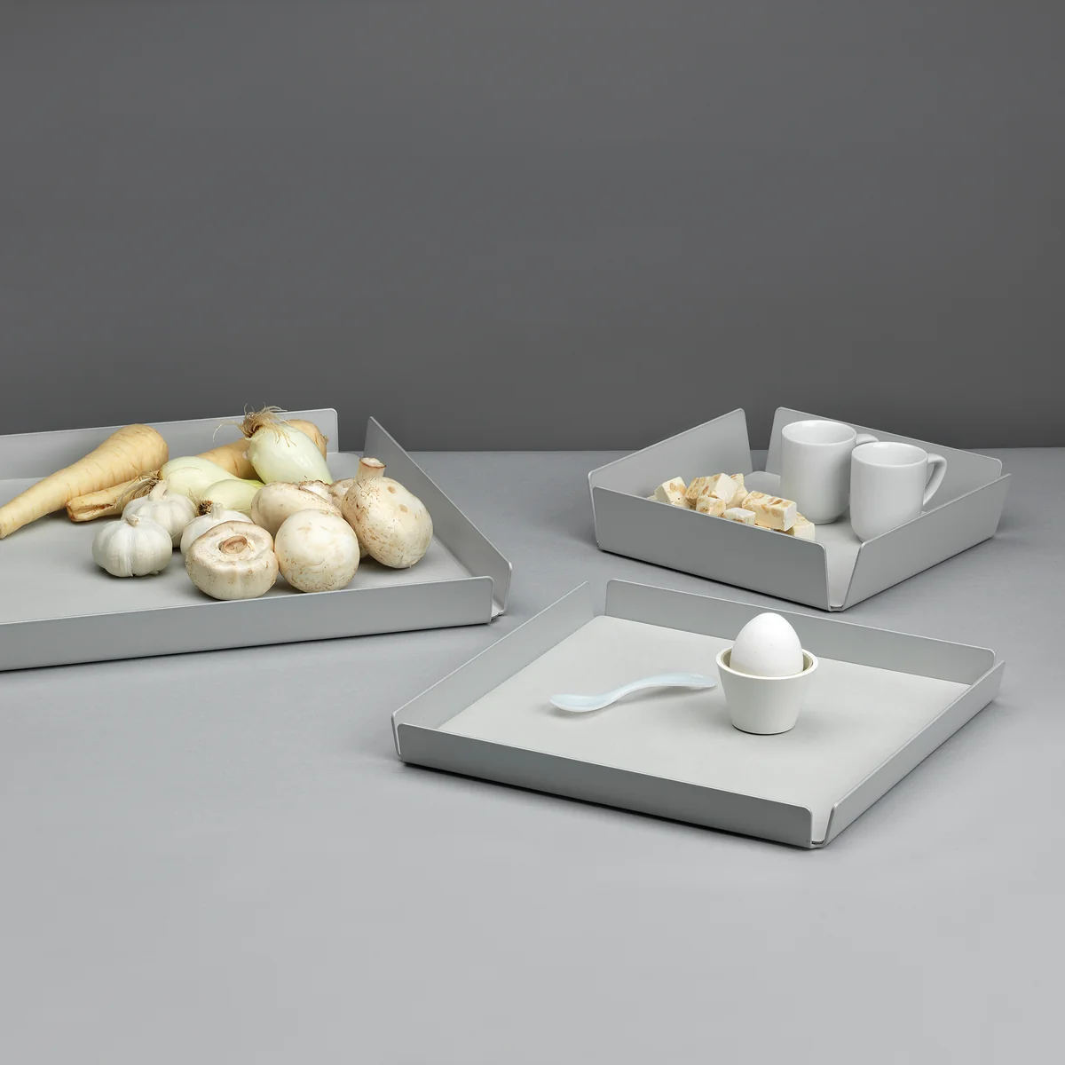 Dank des starken Aluminiums und des schmutzabweisendem, recycelten Leders verspricht das quadratische Tablett von Lind DNA eine lange Lebensdauer.
