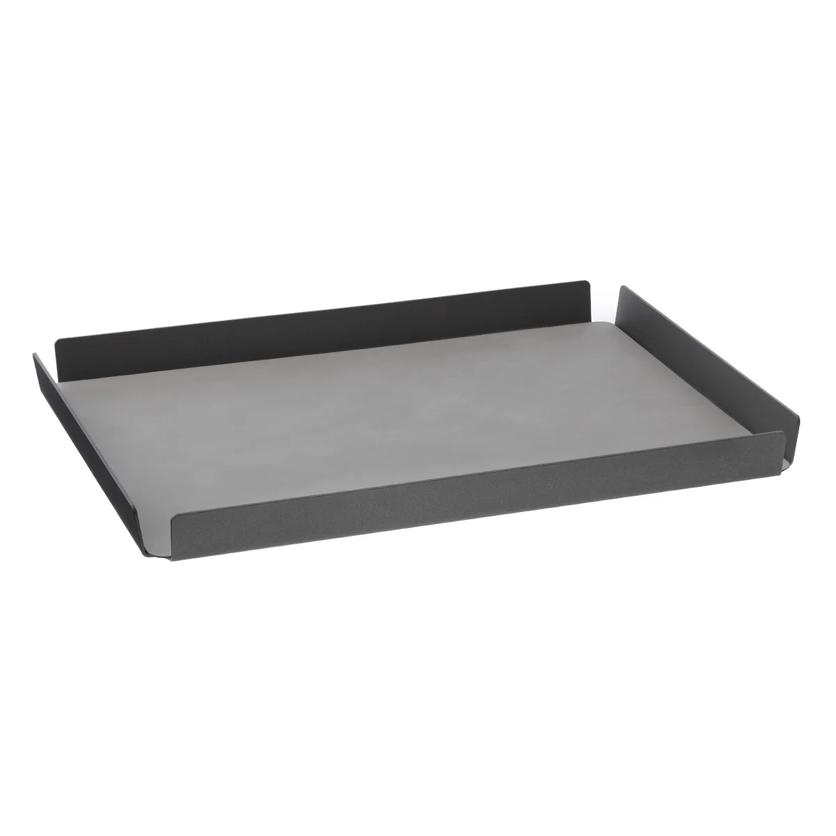 Das Tablett Square in Größe L (36 x 46 cm) von Lind DNA ist ein dekoratives Tablett aus Aluminium mit einer Einlage aus recyceltem Leder. Diese Einlage lässt sich herausnehmen und ist austauschbar - sie ist in verschiedenen gedeckten Farben erhältlich, sodass das Tablett individuell an die jeweilige Situation angepasst werden kann und vielfältig nutzbar ist. Das recycelte Leder (80% Leder und 20% Kautschuk) ist nicht nur ein gelungenes Beispiel für die Verwendung nachhaltiger Materialien, sondern ist auch besonders widerstandsfähig und leicht zu reinigen. Die Kombination aus kühlem Aluminium und warmem, weichem Leder setzt beim Servieren oder Dekorieren ganz besondere Akzente.